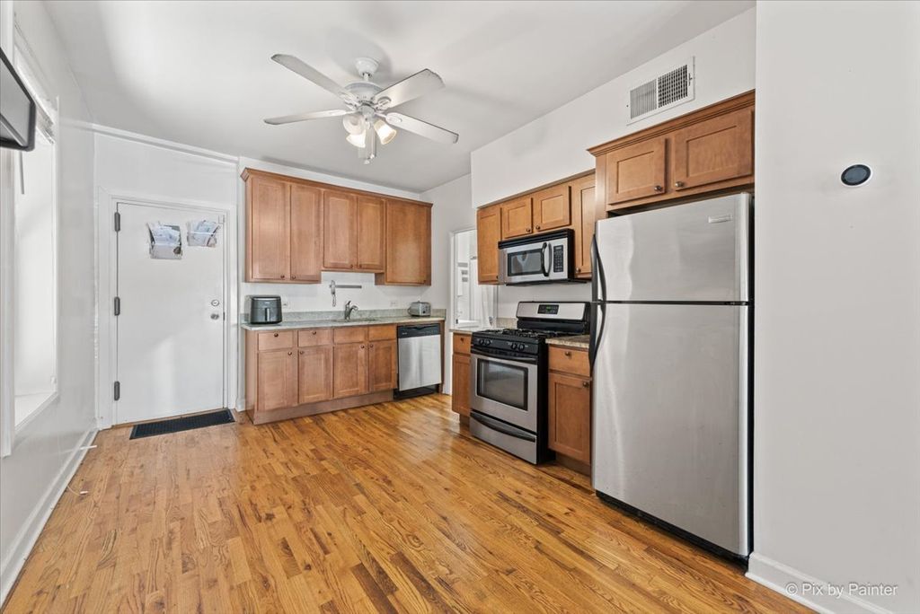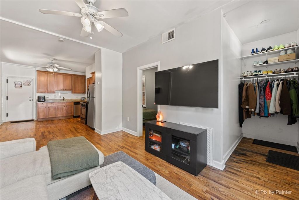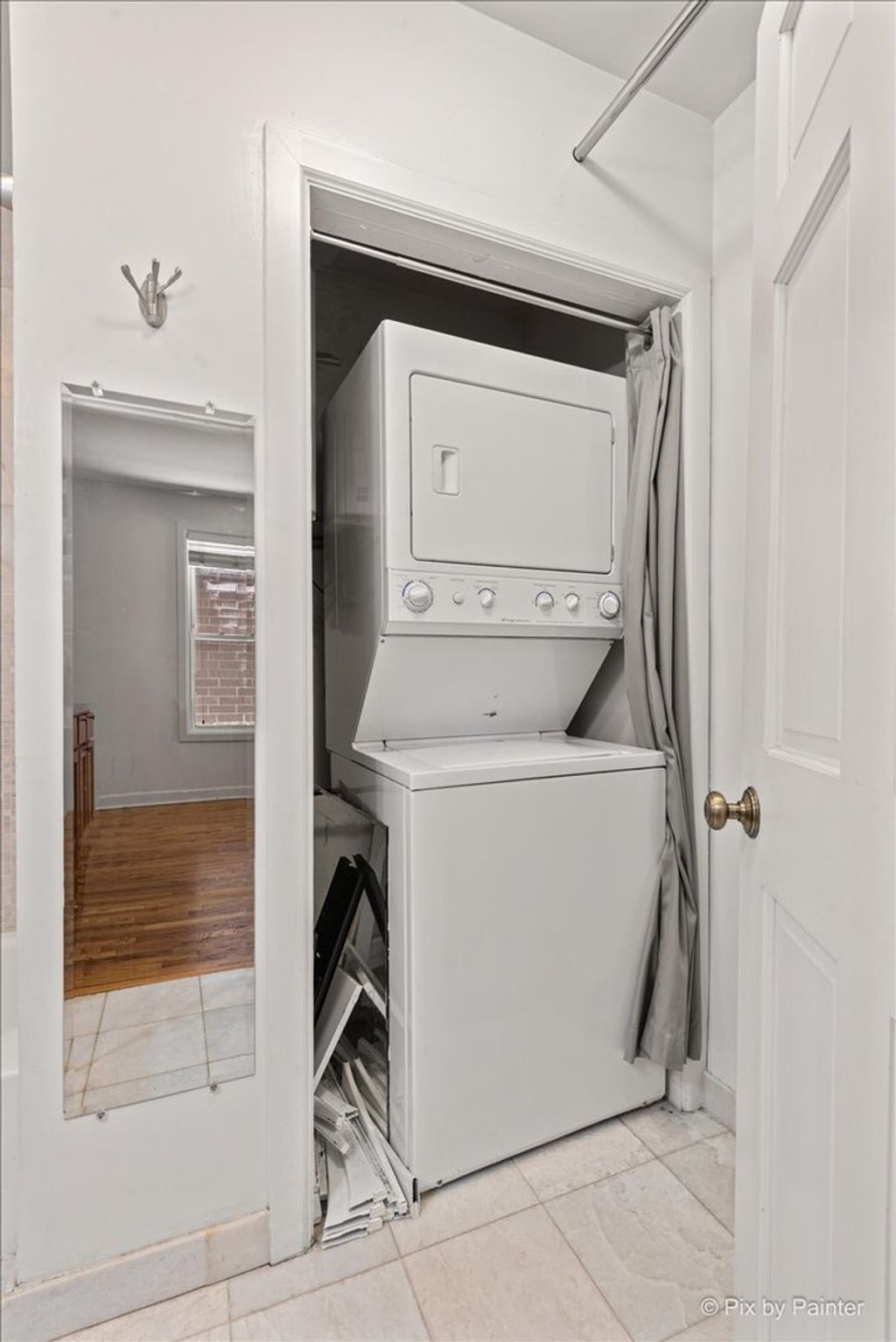 Welcome home to this beautiful 1-bedroom condo in the heart of Bucktown. This charming unit features hardwood floors throughout, a spacious eat-in kitchen with granite countertops, stainless steel appliances, and an open-concept living area perfect for relaxing or entertaining. A large picture window fills the living room with natural light, creating a bright and inviting space. The bedroom comfortably fits a queen bed, nightstand, and dresser, with ample closet space throughout the unit. Enjoy the convenience of in-unit laundry and additional storage. Ideally located just steps from Holstein Park, close to the Blue Line, and surrounded by Bucktown's best shops, restaurants, and cafes. Easy street parking available right outside on Shakespeare. This move-in-ready home offers the perfect blend of comfort and location-don't miss it!
