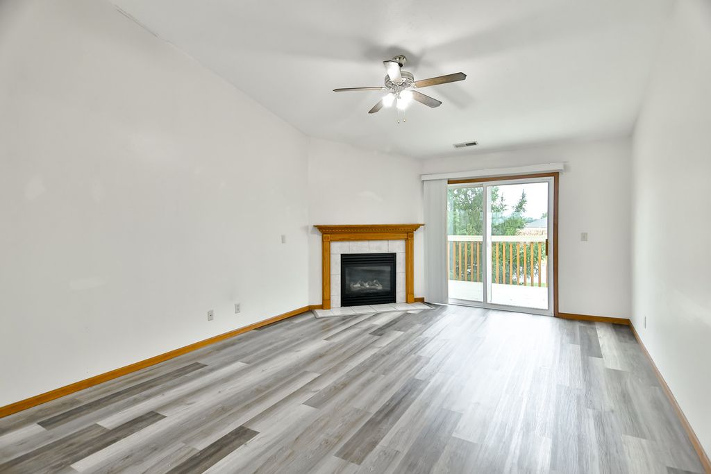 Light and bright move-in ready condo. Ideal Poplar Grove location. New flooring and fresh paint throughout. Vaulted ceilings, fireplace, and large living and dining rooms. Galley kitchen with breakfast bar and white appliances. Two spacious bedrooms including primary bedroom with walk in closet and private bathroom. Deck off the living room and a large two car garage.
