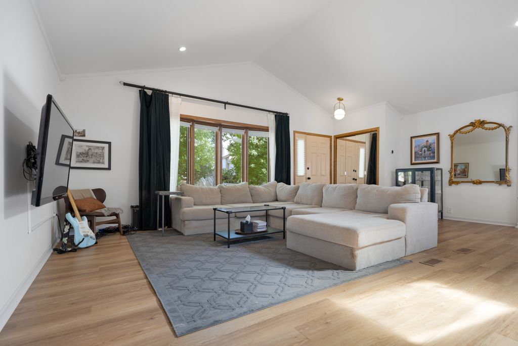 Start your next chapter here! You will fall in love with this brick split level home in the Big Oaks neighborhood in Chicago with 3 bedrooms, 3 full bathrooms, finished basement and 2 car detached garage. Lots of natural light throughout. The updated open concept living/dining area has a large bay window and vaulted ceiling and opens to the kitchen with skylight, wood cabinets with plenty of storage, quartz countertops, a large island, ss appliances and recessed lighting. Wood laminate flooring throughout the main level. Three good-sized bedrooms with hardwood floors on the upper level including the primary bedroom with ensuite. The finished basement has a family room with wood-burning fireplace, full bathroom, laundry w/ sink and utility room. Fenced backyard with deck is perfect for summer bbq's. Recent updates include: remodeled kitchen and main living room (2024) and furnace. Great neighborhood close to I-90, located near schools, shopping, restaurants, parks, forest preserves, transportation including O'Hare and so much more!! Don't miss out!!!