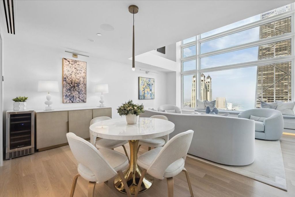 This one of a kind duplex home boasts spectacular views of lake and city on the 58th floor of Olympia Centre. This extraordinary unit is a masterfully redesigned expansive space with 20' soaring living room ceilings, 2 spacious bedrooms, 2.5 baths and magnificent closet space throughout. This 2022 gut rehab consciously reconfigured the space to optimize the exquisite views of the lake and city by installing a see through floating staircase leading to the 2nd floor bedroom with a focus on luxury living both aesthetically and physically. The kitchen and all bathrooms were a custom redesign with the utmost quality finishes. New hardwood flooring and custom millwork add to the elegance of this home. Miele and Sub Zero appliances throughout including an in unit washer/dryer. Beautifully designed stone countertops. Smart home with custom lighting and speakers. Unit 58k2 is a unique home centrally located and walkable to all Michigan Avenue and Oak Street shopping, restaurants and more. Fantastic building staff take care of your every need. Amenities include an indoor swimming pool, two well equipped work out rooms, 24 hour door staff, and on site management. A rare opportunity to own a true Chicago gem in the sky. Seller to settle balance of special assessment at closing. Assigned storage space. Offered furnished.