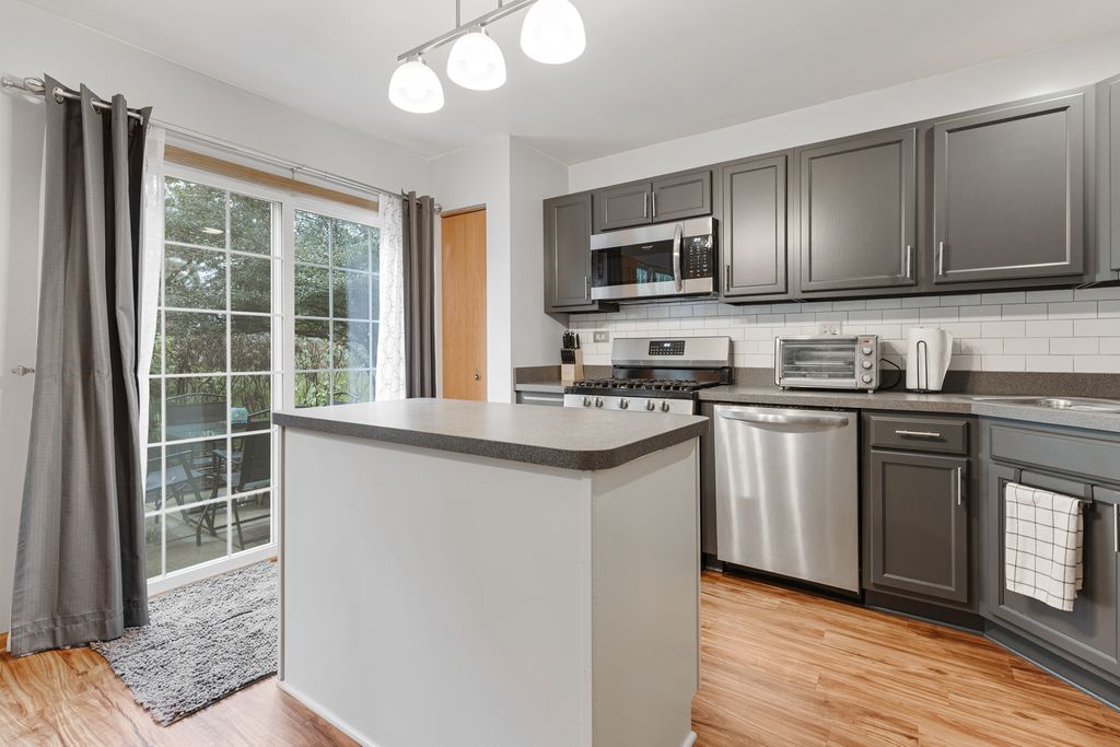 Well maintained and Move-In Ready townhome backing to a berm with mature trees! Features include; Luxury Vinyl Plank Throughout the Main Floor ~ 2 Story Foyer with Open Stairway & Under-stair Storage ~ Island Kitchen with Professionally Painted Cabinets for Modern Look ~ Stainless Steel Appliances ~ Subway Backsplash ~ Powder Room with Newer Vanity ~ French Doors to the Primary Suite with Walk-In Closet and Room Darkening Window Shade ~ Private Bath with Oversized Soaking Tub/Shower and Large Linen Closet ~ Second Bedroom with Big Walk-In Closet and Full Bath ~ Huge Loft for Home Office/Additional Family Room or Convert to 3rd Bedroom ~ 2nd Floor Laundry with Washer/Dryer, Cabinets, Shelves and Mounter Drying Rack ~ 2 Car Garage and Brand New Driveway ~ All of this and more in the Cambridge Lakes Community with access to Walking and Biking Trails, Playgrounds, Sports Fields and Community Center Clubhouse with Fitness Center, Gymnasium, Game Room and Community Pool!