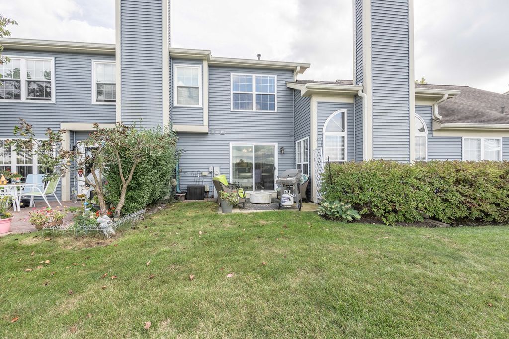 Welcome to this beautifully updated 3-bedroom, 2.1-bath townhome in highly sought-after Cobblers Crossing-perfectly situated on a serene pond with peaceful views year-round. Step inside to an inviting family room with soaring vaulted ceilings, a cozy fireplace, and updated vinyl flooring that flows throughout the main level. The bright and modern kitchen features stainless steel appliances, quartz countertops, a tile backsplash, a breakfast bar, and a spacious pantry. Enjoy your morning coffee or unwind in the evening on the private patio just off the kitchen, overlooking the tranquil pond. Convenience is key with a main-level laundry room located right off the garage. Upstairs, the primary suite offers dual sinks, a stand-up shower, and a separate soaking tub-ideal for relaxing after a long day. Two additional bedrooms and a full hall bath complete the second floor. Peace of mind comes with major components already updated: water heater (less than 1 month old), furnace and A/C (1 year old), and roof (8 years old). The attached 2-car garage provides ample storage and parking. The HOA covers exterior maintenance, landscaping, and snow removal, allowing you to enjoy low-maintenance living. Located close to shopping, dining, and conveniences, this home blends comfort, style, and an unbeatable setting. Don't miss this opportunity to own a stunning pond-side townhome in Cobblers Crossing!