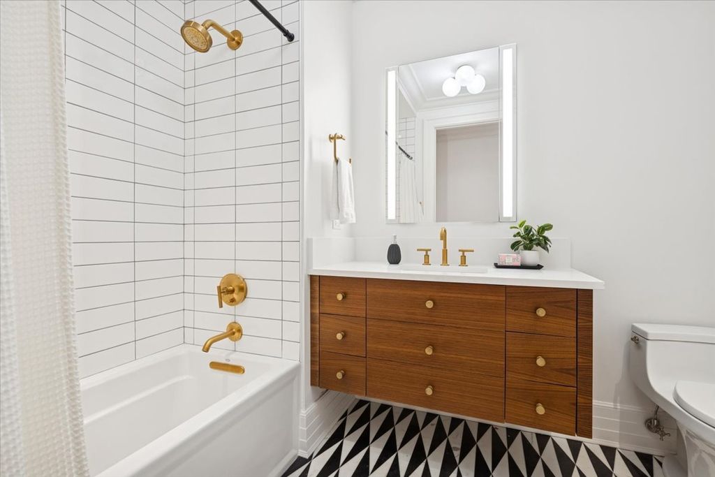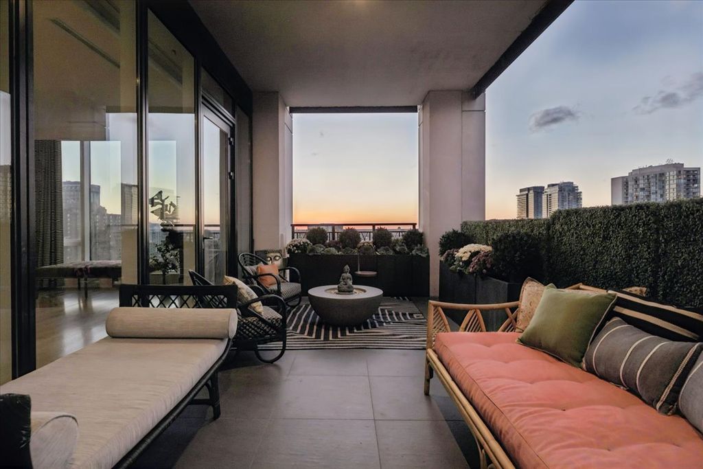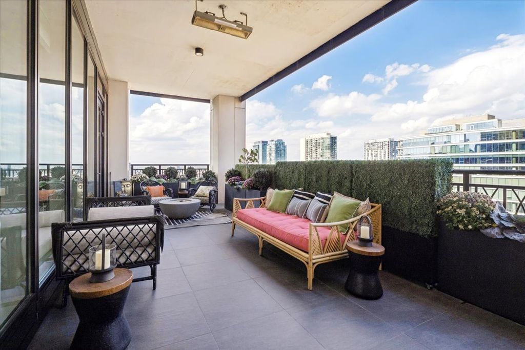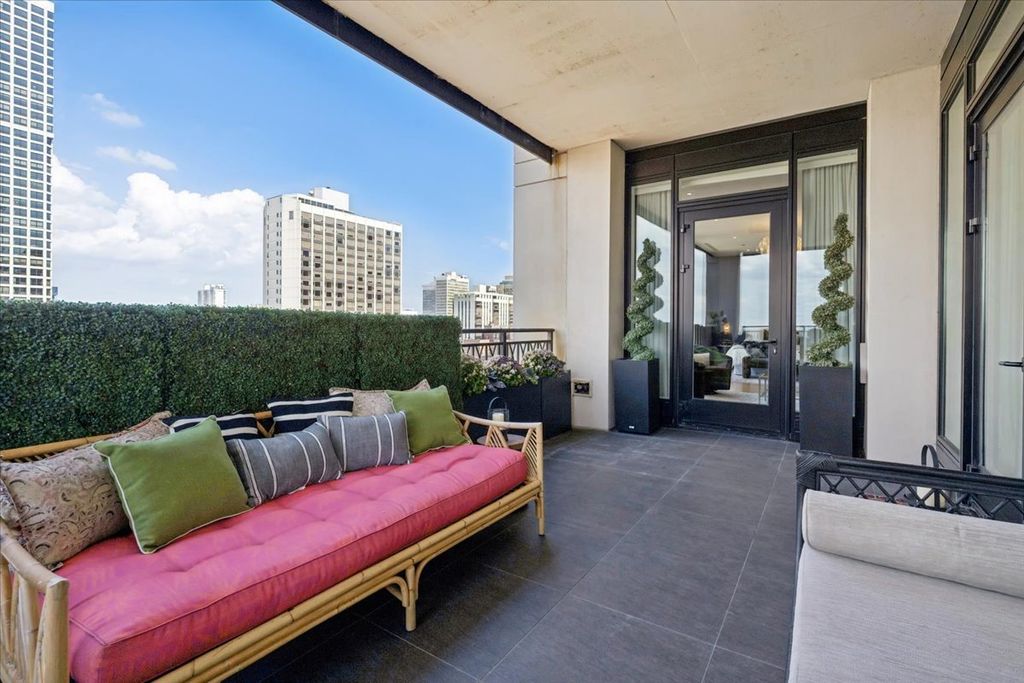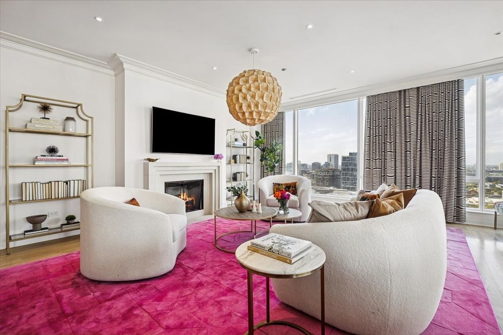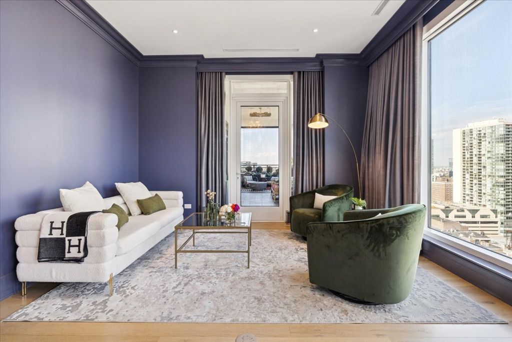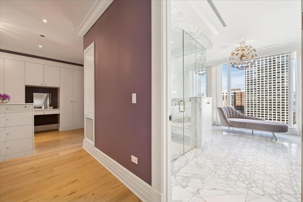 This remarkable 4-bedroom plus office, 4.1-bath half-floor residence is perfectly positioned on the 22nd floor of one of the Gold Coast's most prestigious addresses, capturing breathtaking lake and sunset city views. Rarely available, the expansive layout is bathed in natural light, with bespoke black and white marble mosaic tile setting a tone of refined sophistication from the moment you are welcomed by the foyer. With wide-plank white oak floors leading you through abundant storage within the entry halls, distinctive touches abound, such as the frontmost powder room adorned with hand-painted Paul Montgomery wallpaper and a collection of thirty carefully curated pendant lights from Design within Reach, Rejuvenation, Lightology, and 1st Dibs including antiques from Italy and France. The chef's kitchen is a true showpiece, appointed with O'Brien Harris custom solid walnut kitchen cabinetry and Buster + Punch brass hardware, Wolf appliances-including dual ovens-and a striking Calacatta marble island with an integrated stovetop and pop-up hood. Practicality meets luxury with two 30" Designer Over-and-Under Sub-Zero Legacy Model Refrigerator/Freezers and a plentiful walk-in pantry. While cooking dinner at sunset, one looks out at floor-to-ceiling windows framing sweeping panoramas across the open living and dining areas. The perfect setting for relaxation and entertaining is enhanced by custom drapery throughout, crafted with designer fabrics including Dedar Milano silks and Jean-Paul Gaultier for Lelievre. Entering each living space through solid maple double doors surrounded by custom-carved millwork, the family room and study extend the home's versatility while each bedroom boasts its own full ensuite with radiant heated floors, ensuring privacy and comfort. Custom floating walnut vanities are topped with marble and accompanied by bespoke tile and hardware finishes. The primary suite occupies its own wing, complete with terrace access, a custom walk-in dressing room with storage for all seasons, and a spa-inspired bath featuring an extra large soaking tub with lake views. Additional conveniences include Control4 integration for commanding lights, shades, curtains, TVs, and the state-of-the-art sound system with invisible speakers throughout the home and on the deck, a full laundry room with new Samsung SmartThings washer & dryer and sink, an upgraded private storage room instead of locker, and two assigned parking spaces. Residents enjoy full-service living with five-star amenities and white-glove service: 24-hour door staff, optional valet, an indoor pool and spa, a two-story fitness center, golf simulator, wine storage, guest suites, and beautifully designed entertaining spaces including a catering kitchen, bar, and expansive hosting terrace. Just moments from Chicago's celebrated restaurants, cultural destinations, parks, and Lake Michigan, this residence offers a rare combination of scale, sophistication, and service creating an unparalleled opportunity for luxury city living.