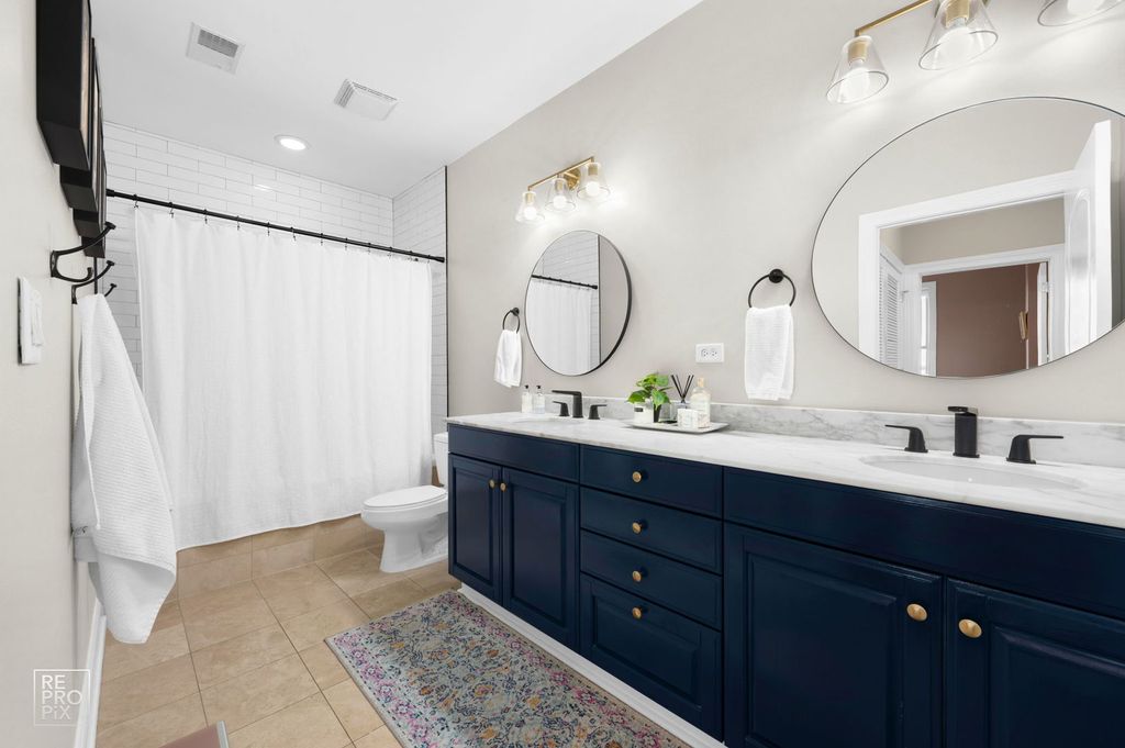 Experience elevated living in this oversized one-bedroom residence perfectly perched in a boutique elevator building, offering sweeping southwest views of the Chicago River and skyline. This home combines modern luxury with thoughtful updates throughout-ideal for buyers seeking turnkey comfort and style. Step inside to discover an expansive open-concept layout with rich hardwood floors, fresh paint on walls and ceilings, and elegant crown molding. The gourmet kitchen features sleek granite countertops with bar seating, a brand-new stone-tile backsplash, chef's coiled faucet, all stainless-steel appliances, and abundant cabinet space-perfect for entertaining or casual dining. The showstopping spa-inspired bathroom (2022 renovation) boasts dual his-and-hers vanities in royal blue, a jetted soaking tub with a long white subway-tiled shower, striking black faucets, and gleaming gold light fixtures and hardware-an exquisite blend of modern and classic design. Retreat to a generous bedroom large enough for a king-sized bed, complete with plush newer carpeting (2022), an oversized walk-in closet, and new automatic window shades (2022). Additional updates include a newer in-unit washer/dryer (2023) and newer AC (2022), ensuring comfort and efficiency year-round. Enjoy summer nights or morning coffee on your expansive private balcony-ideal for grilling and entertaining while taking in the sparkling skyline and city/suburb fireworks views. This home also includes heated indoor garage parking, a basement storage locker, and convenient bike storage. HOA assessments include high-speed cable and internet, providing unmatched value and convenience. Located near the best of Logan Square, Bucktown, and North Center, this residence offers easy access to expressways, parks, and popular neighborhood spots like local coffee shops, breweries, restaurants, and major retailers including Costco, Target, Home Depot, and Starbucks. Move right in and enjoy luxury living with unbeatable views, modern finishes, and every amenity you could ask for-all in one perfect home.