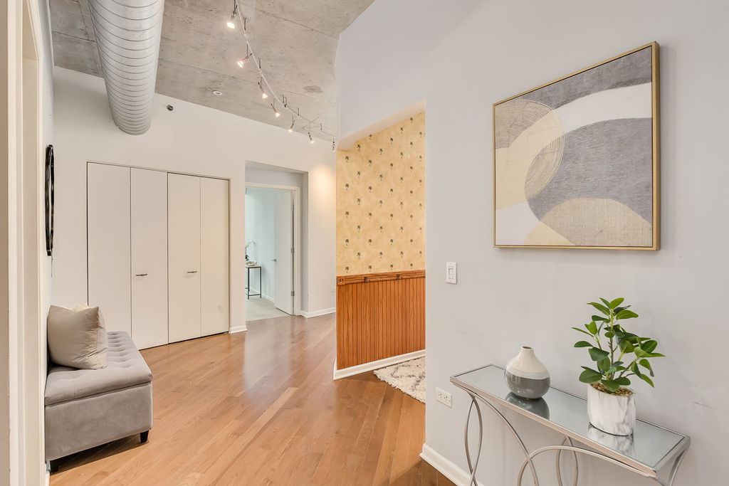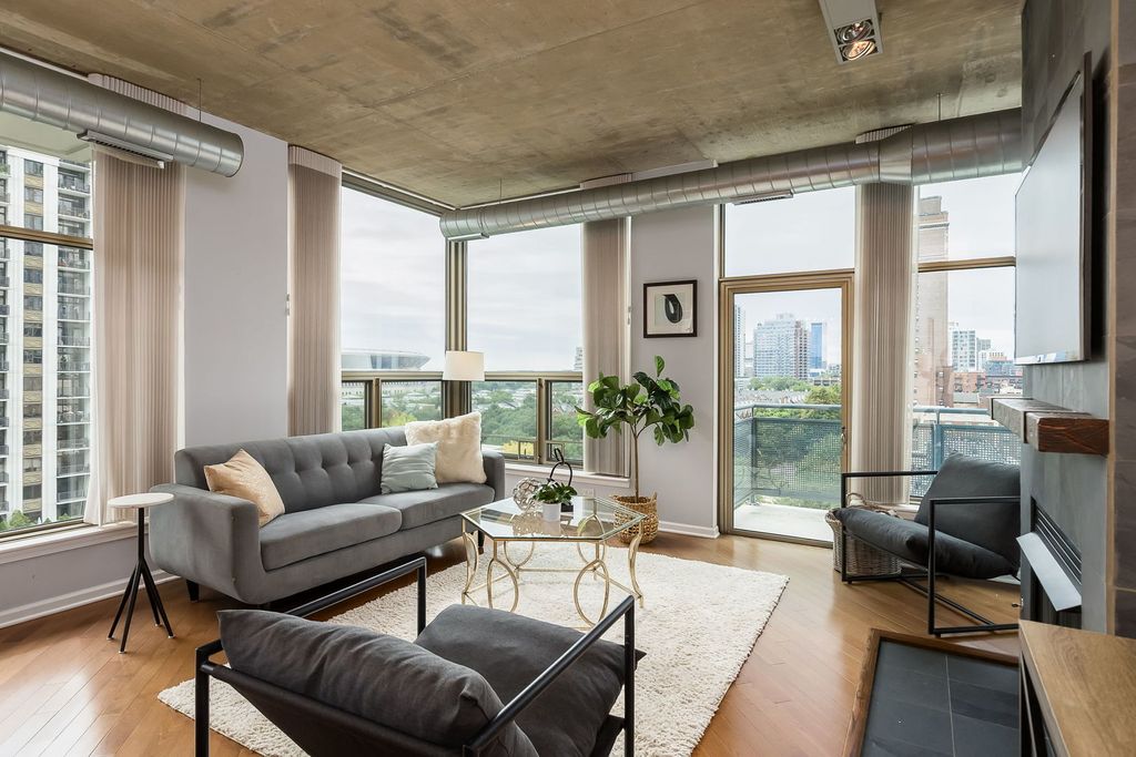Welcome to this spacious 2 bedroom, 2 bathroom plus den home in one of the South Loop's most desirable full-amenity high-rises. This sun-filled unit features an open floor plan with floor-to-ceiling windows, hardwood floors, and a private balcony perfect for enjoying city views. The modern kitchen offers stainless steel appliances, granite countertops, and a large breakfast bar-ideal for entertaining. The primary suite includes a walk-in closet and spa-like bathroom with dual vanity, soaking tub, and separate shower. A versatile den provides the perfect space for a home office, workout area, or guest nook.Building amenities include 24-hour door staff, fitness center, party room, and on-site management. Pool is a separate amenity located at 1235 S. Prairie for a small annual fee. Conveniently located near Grant Park, the lakefront, Museum Campus, restaurants, and public transit. Heated garage parking - this unit's assigned space is located on the second floor, offering the convenience and desirability of quick, easy access.