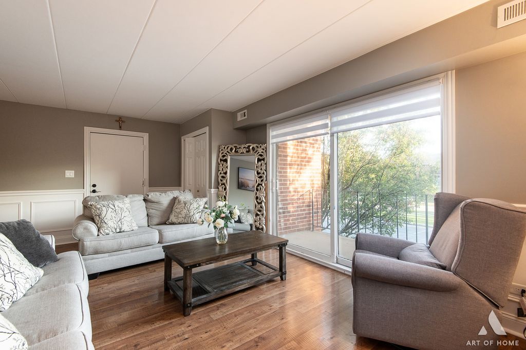 Modern and beautifully updated 2-bedroom, 2-bath condo with serene pond views! This stylish condo features the updated eat-in kitchen showcases sleek white cabinetry with a built-in wine rack, granite countertops, stainless steel appliances, and a beautiful water view to enjoy with your morning coffee. The spacious living room includes a cozy wood-burning fireplace and sliding doors leading to a front balcony with a custom oak plant stand-perfect for your favorite greenery. Both bathrooms have been tastefully remodeled, and newer flooring flows seamlessly throughout the home. You'll love the convenience of the in-unit stackable washer and dryer and the oversized back balcony -ideal for outdoor dining or simply relaxing while overlooking the peaceful pond and nearby playground. Fantastic location within walking distance to Centennial Park, Orland Park Health & Fitness Center, and so much more! A move-in ready home that combines comfort, style, and a prime setting.