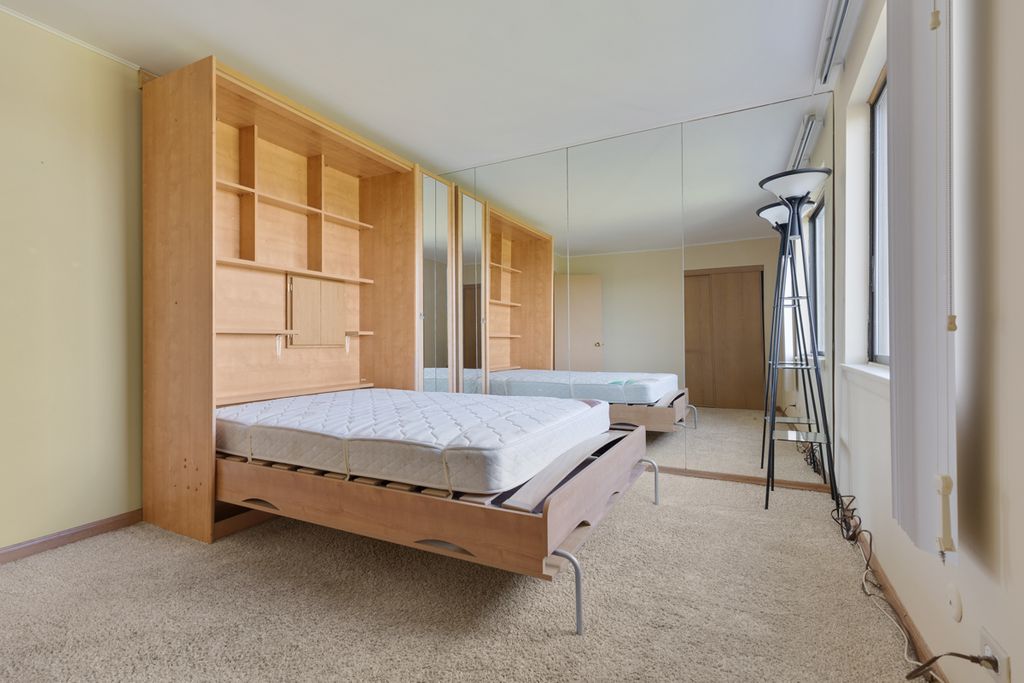 Fourth floor corner location with magnificent LAKE VIEWS from every window! Kitchen was remodeled with granite counters and additional cabinet space. Primary bedroom has private bathroom that includes a walk in shower and it is beautifully done. Second bedroom has a Murphy bed so you have more versatility in your life style. Soundproofing was added in the living room, dining room and second bedroom ceilings. The large immaculate laundry room is just down the hall and so is the oversized storage area (4W-01). Association fee in this building includes basic cable and internet plus gas heat, central air, water, trash, social room, pool, lake rights and more. Right by newly renovated Marshall Park. Neighborhood surrounded by Busse Woods. Real estate taxes include senior $673.52 and freeze $1,792.74. This building allows wood/laminate flooring with restrictions. No rentals. FLOORING CREDIT IS AVAILABLE.