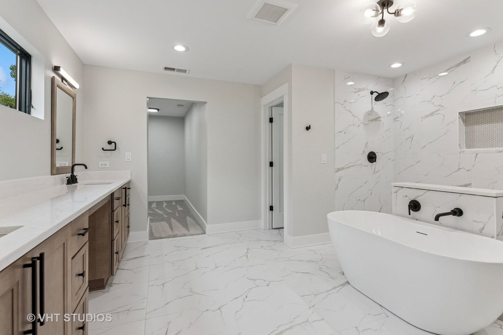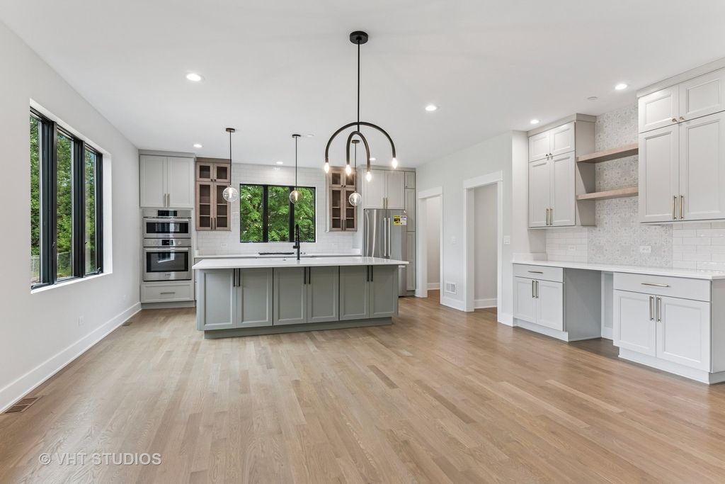 Spectacular NEW CONSTRUCTION in Palatine. A stunning wood and iron staircase welcomes you to this incredible 3,200 square foot home offering custom features throughout. Gorgeous hardwood flooring leads throughout the main level which includes an enormous great room - perfect for everyday living and fabulous entertaining. A modern gas fireplace provides warmth while spectacular sliding doors usher beautiful outdoor views inside. The gourmet kitchen boasts three-toned cabinetry, high-end appliances including Bosch built-in oven, microwave, dishwasher, and KitchenAid five-burner cooktop. White subway tile backsplash accents miles of beautiful quartz on abundant stretches of countertop workspace and the huge center island. A custom beverage center features additional cabinet space, decorator tile, and room for your beverage refrigerator. A back kitchen (listed as a bonus room) provides a perfect haven for additional kitchen storage, small appliances, and hidden food prep for easy entertaining. The first-floor mudroom features a built-in bench, a coat closet, and provides the perfect transition from the three-car garage and home. The spacious master suite features a luxury master bath with separate sinks, a soaking tub, a spectacular double shower, and large walk-in closet. The second bedroom offers its own private bath with a beautiful hall bath serving the third a fourth bedrooms. Beautiful views of mature trees are seen out every window. Laundry is conveniently situated on the second level. A full basement provides abundant storage space, a rough-in for bath, and holds incredible potential for future living space with your finishes. Enjoy summer evenings on the deck overlooking beautifully landscaped neighborhood homes. See this very special home today!