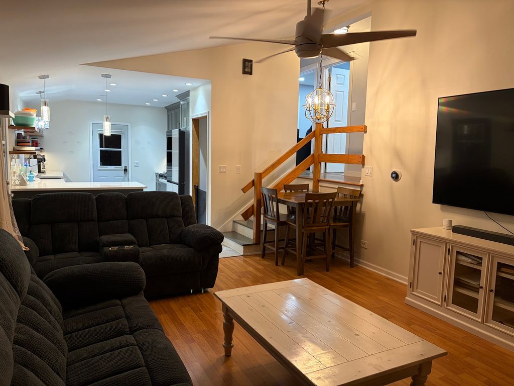 This home has a beautiful kitchen with new stainless steel appliances. Newer laminate flooring in bedrooms, water heater less than a year old, roof 2019, furnace and A/C 2018. Full bath recently updated, two car detached garage and fully fenced yard. Living room has wood burning fireplace and large rec room in english basement with additional half bath.