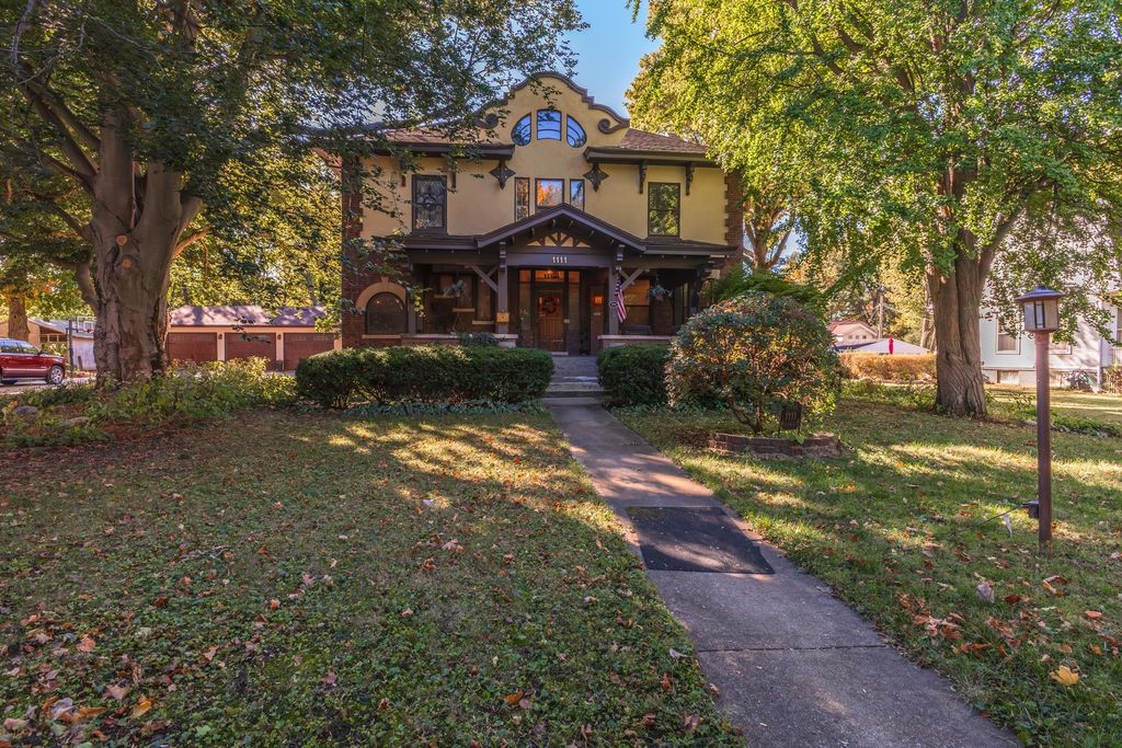 Truly one of a kind home. Welcome to Historic Graves Grove on E Grove street. An opportunity of a lifetime awaits you at 1111 E Grove Street! Built in 1906 by the well renowned, Paul Maratz. This house has never been sold through MLS and has been lived in by only three families in 119 years. The house sits on .75 of an acre in the middle of historic E Grove st in Bloomington. We even have original receipts and correspondence for the building of the house. 1111's most valuable details to share: Brick and stucco, four bedrooms with a finished attic used as a fifth bedroom. Park-like settings, backyard that runs from Grove to Olive street, newer, extra large three car garage. Original fish pond that has been reconditioned, the sounds of the running water will put you at peace. Over 4,000 finished square feet with the most jaw dropping woodwork throughout. Amazing family crest stained glass windows. Six sets of pocket doors. Screened in back porch. 3 fireplaces (the front hall fireplace has the same rocks from the Miller Park entrance, which was being built at the same time. Only a couple of blocks from Washington Elementary.