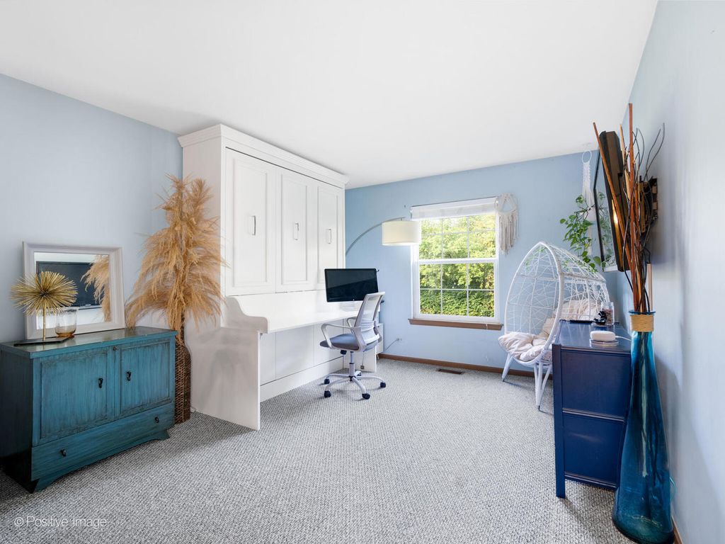 MOVE-IN READY TOWNHOME! This beautifully maintained home features an updated (2018) kitchen with stainless steel appliances, granite countertops, and a seamless flow into the dining and family rooms-perfect for everyday living and entertaining. Enjoy easy access to the private patio through sliding glass doors, ideal for grilling or relaxing outdoors. The family room is filled with natural light and showcases a vaulted ceiling and gas fireplace. A first-floor powder room and laundry/utility room with direct garage access add convenience. Upstairs, a spacious loft area with brand-new carpet offers flexible use-ideal as a home office, playroom, or lounge. The primary suite includes a vaulted ceiling, large walk-in closet (6x8), and a private ensuite bath renovated in February 2023. The second bedroom also features new carpet and includes a Murphy bed/desk-a smart use of space! A generous hall bath completes the second level. Fantastic location-close to shopping, dining, parks, and forest preserves, with easy access to I-355 and I-88. Don't miss this one!