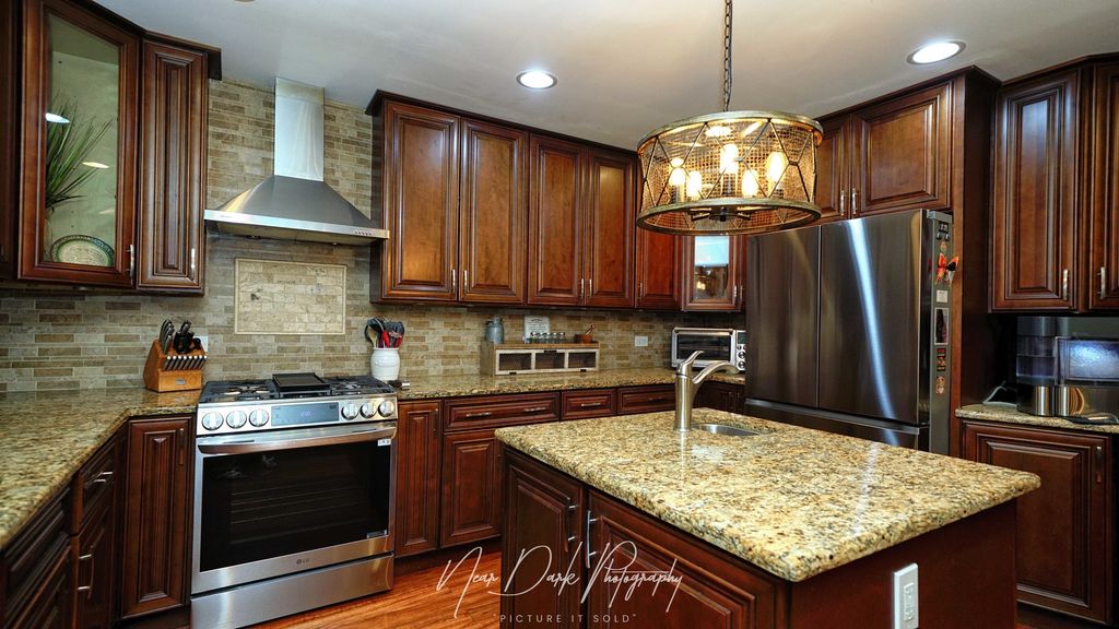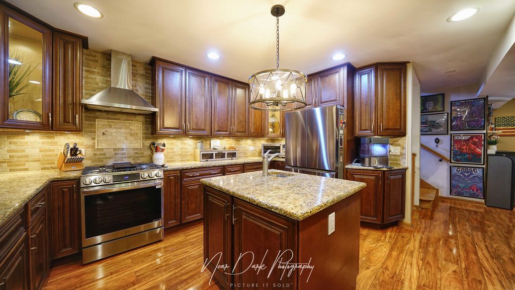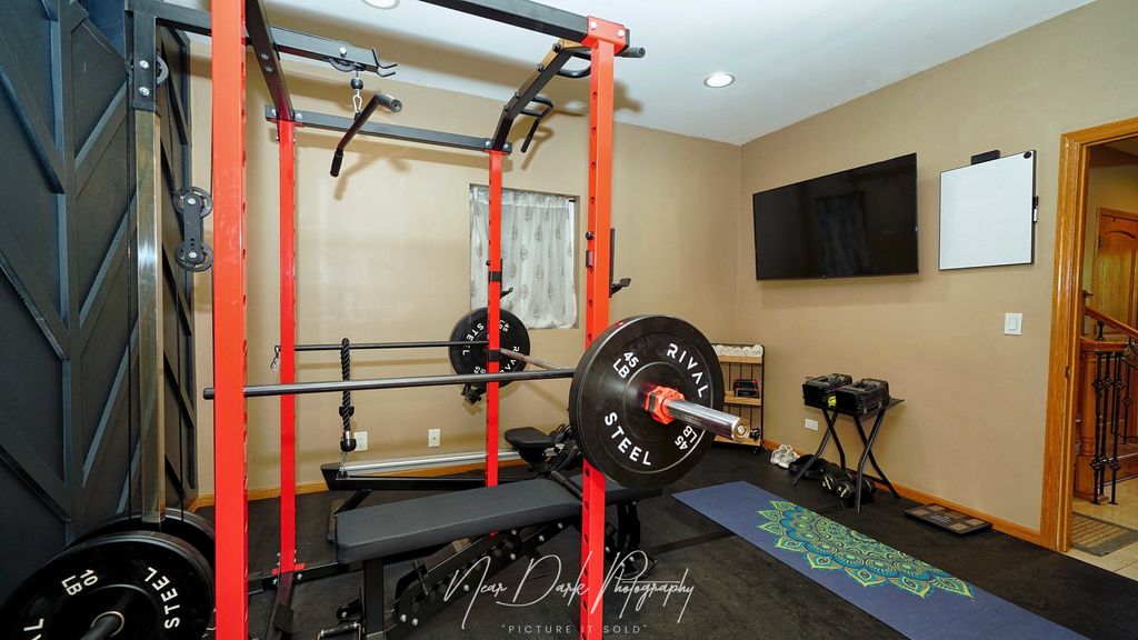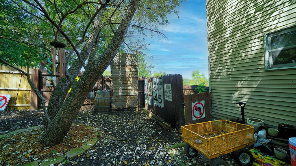 4 Bedroom * 3.5 Bath * Custom, Custom, CUSTOM! This isn't just a house, it's an experience. From the second you pull into the 6-CAR driveway, you know you're in for something special. Step inside and BOOM - the foyer greets you with a custom mudroom bench, sleek wall organizer, and tiled floors with a jaw-dropping inlay. Oh, and the oak staircase? Yeah, it curves dramatically with wrought iron balusters. (We told you this place has flair.) BUT WAIT. Right behind that staircase - a first-floor bedroom suite with its own full bath. Currently a home gym, but honestly... guest suite, in-law suite, or your own personal zen zone - you pick. Head upstairs and get ready for your jaw to drop: a chef's dream kitchen with walnut-finished 42" maple cabinets, gleaming granite counters, and more storage than you'll ever need. Center island with bar sink Wine cooler Coffee bar Breakfast bar Basically, this kitchen is ready for brunches, birthdays, and late-night pizza parties. And the flow? Wide open into the dining area and massive great room featuring a custom wood-accented Heatilator fireplace with full distressed wood backdrop. Total cabin-chic vibes. Slide open the doors and step out to your covered deck, overlooking a fully fenced yard with a fire pit hangout spot AND... wait for it... your very own axe-throwing station. Yes. Really. Inside, don't miss the laundry room and yet another custom half bath (are you noticing a theme?). Upstairs, the master suite is your retreat: oversized, wainscotted accent wall for a perfect headboard backdrop, dual vanities, and a full-body rain shower experience. Guest bedrooms? Spacious and each with their own unique wood wall accents that deserve their own Instagram posts. And the garage? Heated, loaded, and leading you to the ultimate man cave - complete with full-size fridge and rugged style. One of you gets the kitchen, the other gets the man cave. Fair trade, right? Location perks: Minutes to downtown Fox Lake with restaurants, theater, and the legendary Chain O' Lakes boating scene. Warning: This home causes serious FOMO. Don't walk... RUN. * Driveway is only slanted at the 1st 3rd of the drive - it is even with the garage at the top. Township plows/shovels that 3rd because it's a School Bus Route.
