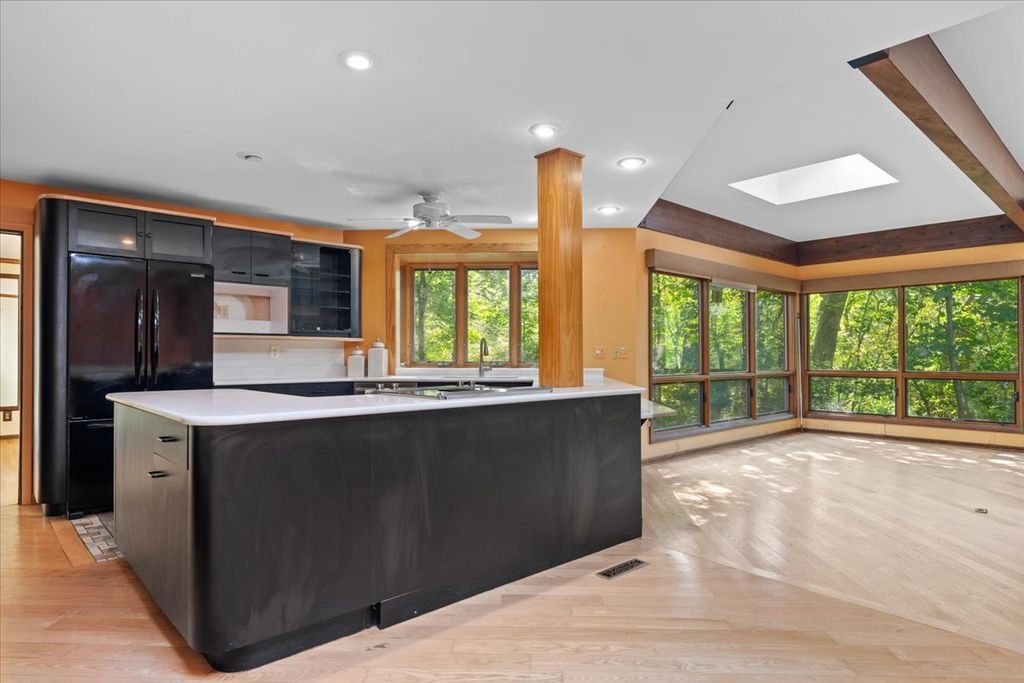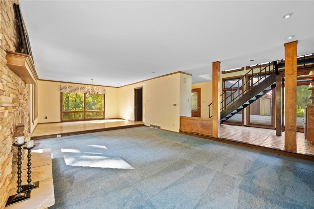 Nestled on a beautiful 1.6 acre wooded lot, this spacious home offers a balance of peaceful tranquility and comfortable living and is perfect for entertaining. The flexible floor plan provides a wonderful flow from the large family room that opens to the screened-in porch to the inviting living room with a second fireplace that connects seamlessly to the main living areas. A private first-floor den and an additional office nook off the family room offer two ideal work-from-home options, or versatile spaces to suit your lifestyle needs. The newer kitchen features solid surface countertops and opens to the expansive family room, creating the heart of the home. The newer remodeled primary bath is beautifully designed with heated floors and is handicap accessible. Step into the private screened-in porch and out to the Trex deck, perfectly nestled among the trees - a serene retreat for morning coffee or evening gatherings. The basement provides a blank canvas, ready for your personal touch and future possibilities. While this is an ESTATE SALE BEING OFFERED IN AS IS CONDITION, the sellers have provided valuable updates and information: dual HVAC systems, new sump pump (2020), new water heater (2025), new septic (2025), new retaining wall (2025), and most windows have been replaced. Experience your own private oasis - a property that feels worlds away, yet close to everything you need.