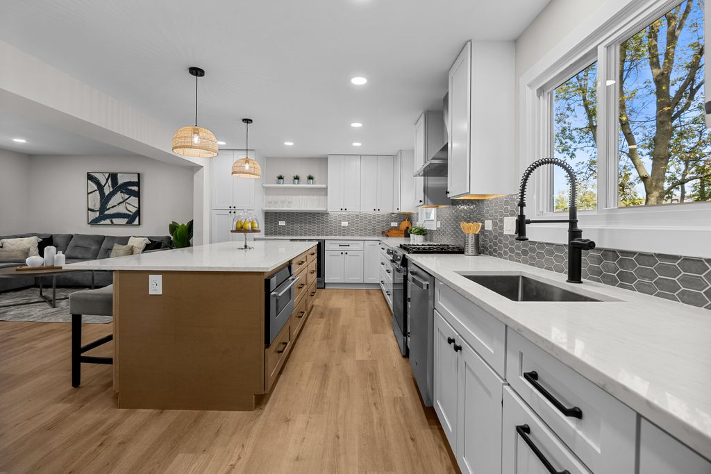 Prepare to fall in love with this gorgeous full remodel perfectly situated on a quiet cul-de-sac with a beautiful backyard overlooking a pond. Every inch of this home has been thoughtfully updated for today's modern living. The heart of the home is the stunning open-concept kitchen featuring an 8-foot island, custom cabinetry, sleek finishes, and a bar area perfect for entertaining. Natural light pours in, highlighting the spacious flow between the kitchen, dining, and family room highlighting the waterproof luxury vinyl plank flooring throughout main level. Upstairs, you'll find four generously sized bedrooms, including a luxurious primary suite with a dreamy walk-in closet and a spa-like bathroom. The finished basement offers even more living space-ideal for a playroom, media area, or home gym. Peace of mind comes easy with a new electrical panel, newer windows & patio door, new furnace, A/C, water heater, sump pump, and garage door. The garage is also prepped for your EV vehicle. The wide backyard provides plenty of room to relax or play, all with a serene pond view as your backdrop. Stylish, spacious, and completely move-in ready-1139 Rothbury Court is the perfect blend of luxury and livability in the heart of Schaumburg. Schedule your showing today!!