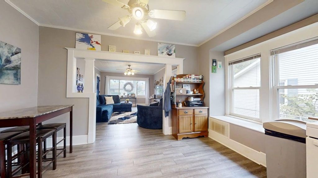Welcome home to this charming 2 bedroom, 1 bath gem situated on a desirable corner lot in a convenient location-just minutes from shopping, dining, and downtown! You'll love the beautifully updated kitchen (2021) featuring modern finishes and plenty of cabinet space, along with new flooring that adds warmth and style throughout the main living areas. Both bedrooms boast classic hardwood floors, creating a timeless, inviting feel. Enjoy peace of mind with a new roof (2024) and a freshly remodeled bathroom (2024) that brings a touch of contemporary comfort. The full unfinished basement offers ample storage or the perfect opportunity to expand your living space. Relax outdoors on the covered patio, ideal for morning coffee or evening gatherings. This well-maintained home combines character, updates, and location-ready for you to move right in and make it your own!