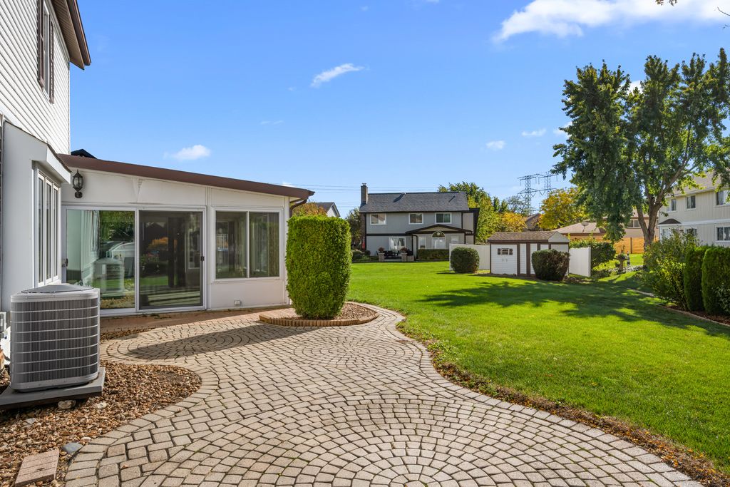 Beautiful move in ready 4 bedroom Tudor in Addison's highly sought after Foxdale subdivision! This home has been meticulously maintained by the same owner for several decades! Prepare to be impressed as soon as you pull up to this large quiet cul-de-sac lot with full brick paver driveway. Inside you'll find fresh paint throughout the entire home, gleaming engineered hardwood floors, remodeled kitchen that opens to family room, and a large sun room of the rear of the home. Kitchen offers beautiful staggered height cabinetry with crown moulding, stainless steel appliances, granite countertops, and recessed lighting. Family room with floor to ceiling brick fireplace. Awesome sunroom has heat source and 3 walls of windows and can be enjoyed all year round! Upstairs offers 4 generously sized bedrooms and remodeled master and hall bathroom with heated floors! Huge brick paver patio to enjoy your backyard, and large shed for additional storage. Several recent updates including: AC (2021), Pella Windows (2016), Furnace (2009). Tons of extra storage in garage and walk up attic. Large concrete crawl space with easy access. Unbeatable location - less than 1 mile to I-355, Wal-Mart, Sam's Club, Aldi, Starbucks, and more! Hurry and make an appointment. This neighborhood moves quickly!