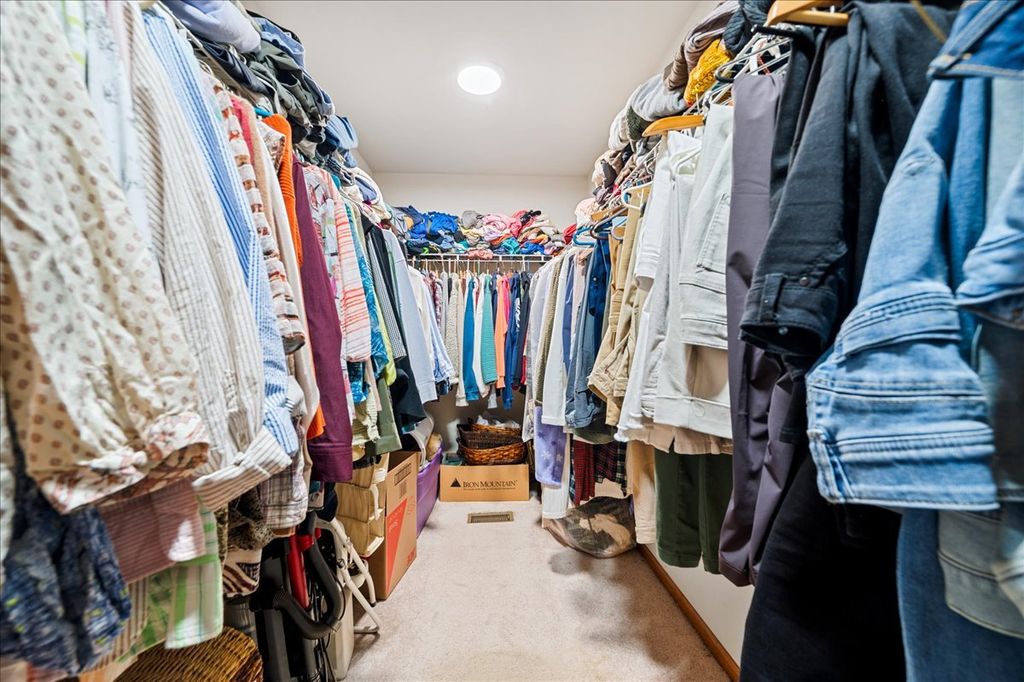 Beautiful 2 Bedroom + Loft Townhome in Woodland Meadows East! Step into the inviting living and dining room combo featuring soaring cathedral ceilings, a cozy fireplace, and rich wood laminate flooring. The bright kitchen opens to a private deck-perfect for relaxing or entertaining outdoors. Upstairs, you'll find two spacious bedrooms including a primary suite with a walk-in closet and private bath, plus a versatile loft that could easily be converted to a third bedroom or home office. The full basement offers additional living space with a partially finished area ready for your ideas. Convenient first-floor laundry and an attached 2-car garage add everyday ease. Recent updates include a new furnace and A/C for peace of mind.
