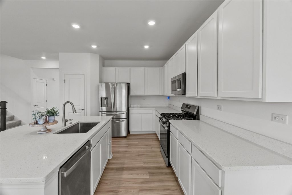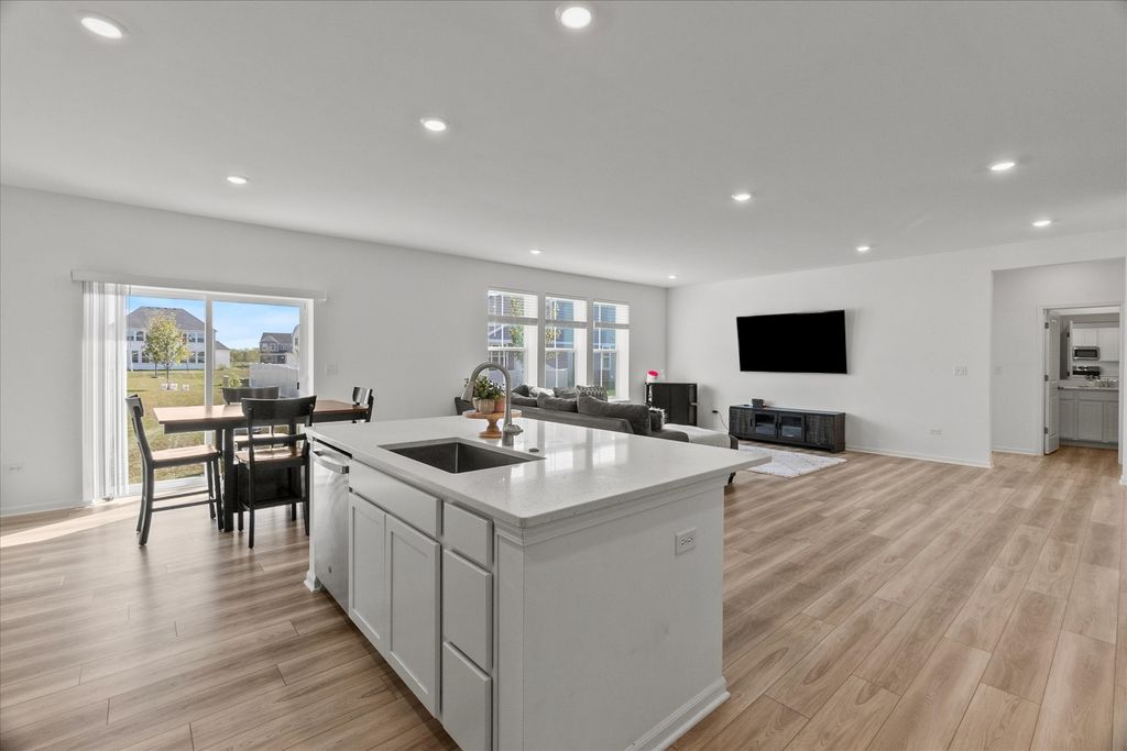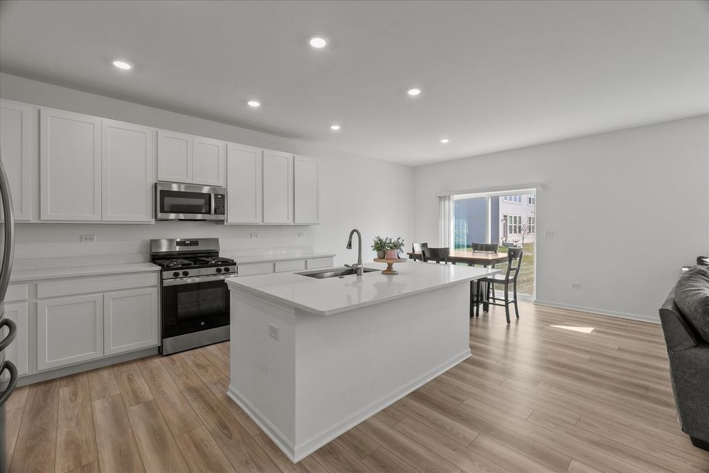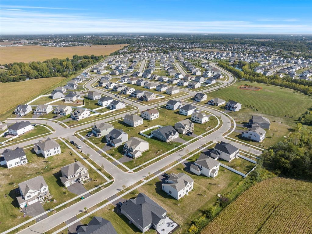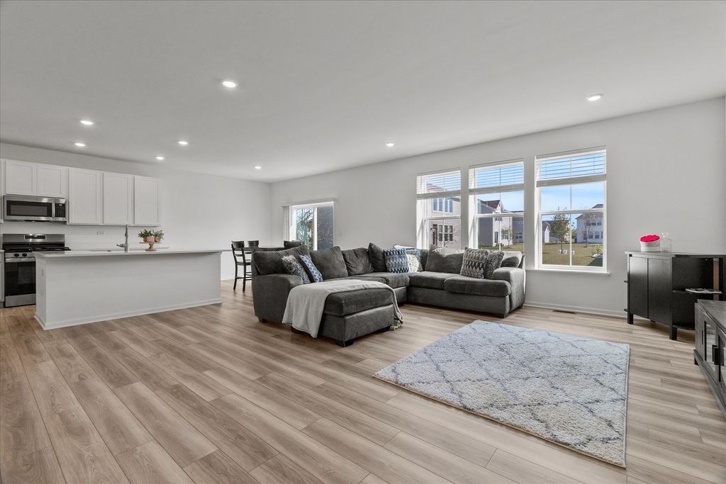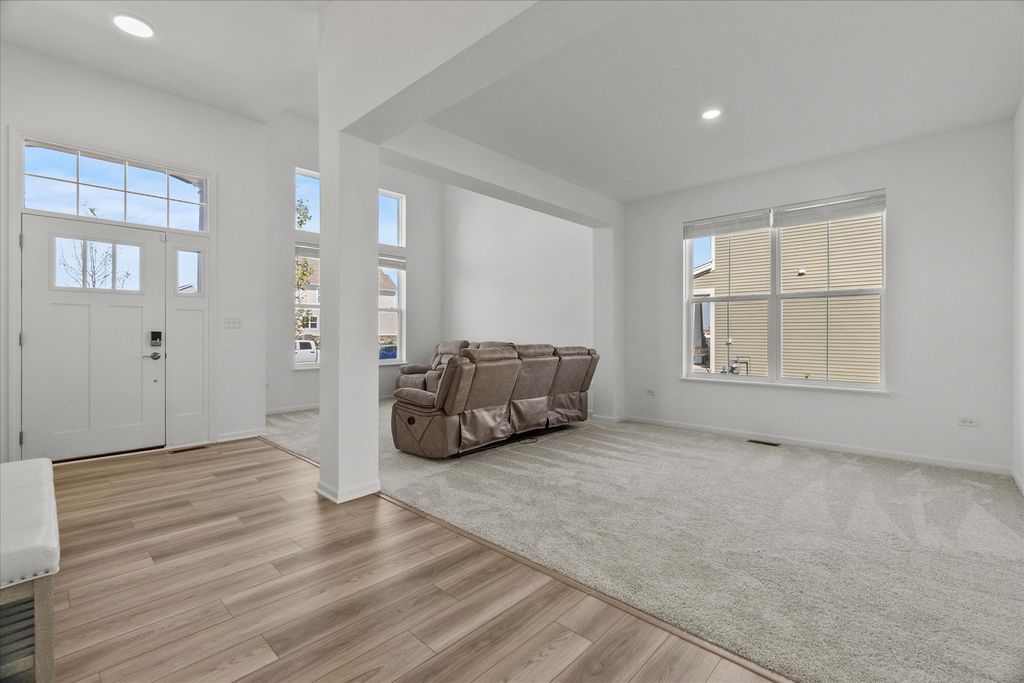 Looking for an in-law suite or a main-floor bedroom and full bathroom? Offering five spacious bedrooms, this property is perfectly located in the highly sought-after Plainfield North High School District. With a fantastic price and proximity to local amenities, this home delivers an unbeatable value. The expansive, family-friendly layout boasts a modern exterior featuring an arched brick entry, multi-pane windows, and horizontal lap siding. Step inside to a grand two-story foyer, flanked by a formal living room and dining room. Throughout the main areas, and kitchen, luxury vinyl plank flooring creates a seamless flow, with the same stylish finish extending into the large family room. The chef's kitchen is a standout, featuring 42" cabinets, quartz countertops, an oversized island, stainless steel appliances, and a pantry-offering both convenience and plenty of space. For added flexibility, the first-floor in-law suite, is next to a full bath, and tucked away from the main living areas. This space is perfect for guests, a home office, or playroom. Upstairs, the owner's suite offers a luxurious escape, complete with double walk-in closets and a deluxe shower bath design. The second floor also features three additional generous bedrooms, all surrounding the central staircase. Additional upgrades include luxury plank in the family room, the optional and added first-floor in-law suite, rough-in plumbing in the basement and a craftsman front door, adding to the home's appeal. With nearby outdoor recreational options, including Mather Woods hiking trails, the Prairie Activity Recreation Center, Gregory B. Bott Park, and the Fort Beggs Bike Trail, there's no shortage of ways to stay active. A community park is also in the works! Plus, the vibrant downtown Plainfield area-just 3 miles away-offers shopping, dining, and entertainment for those seeking a night out. This home has it all-luxury living, abundant amenities, and an unbeatable location!
