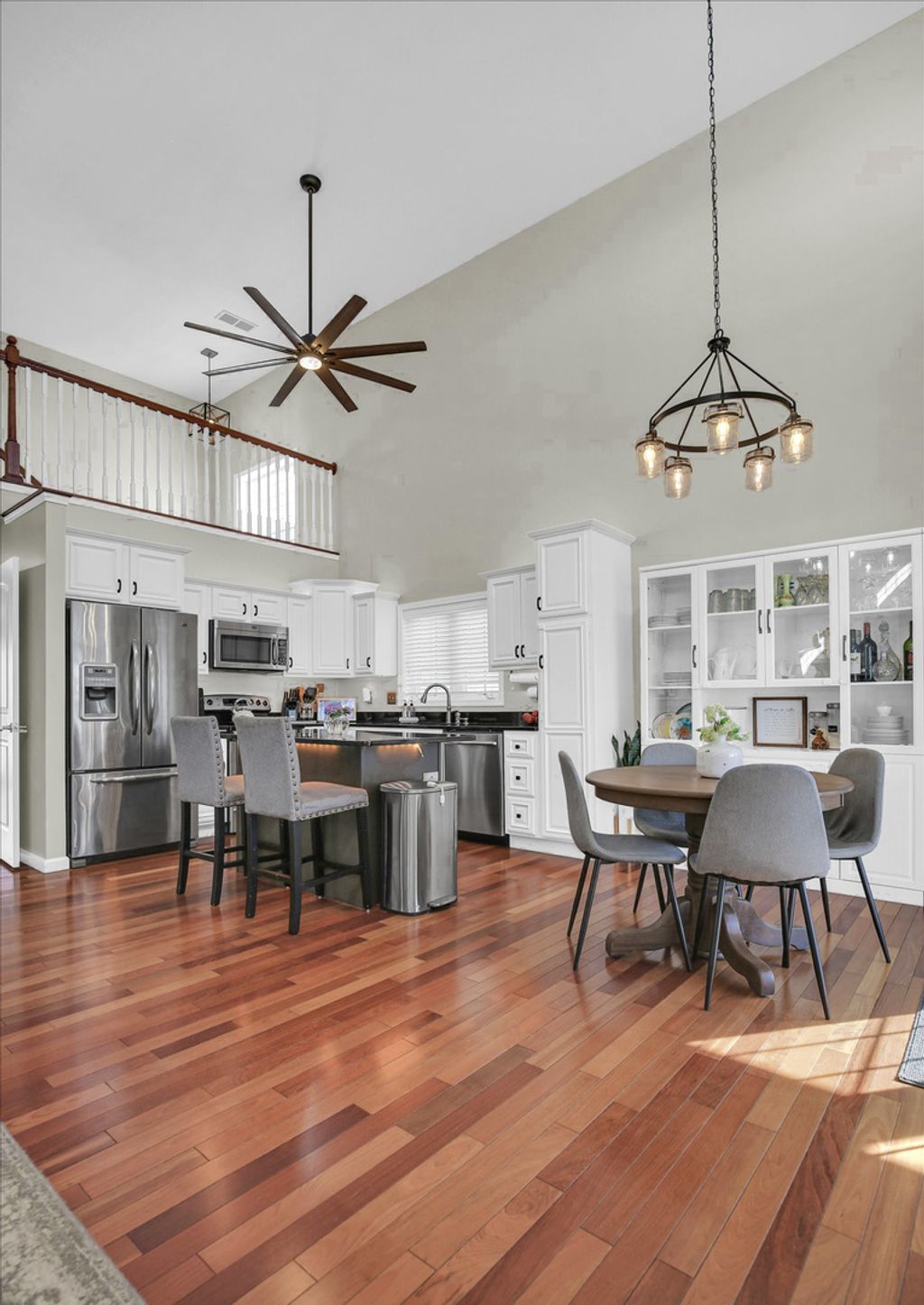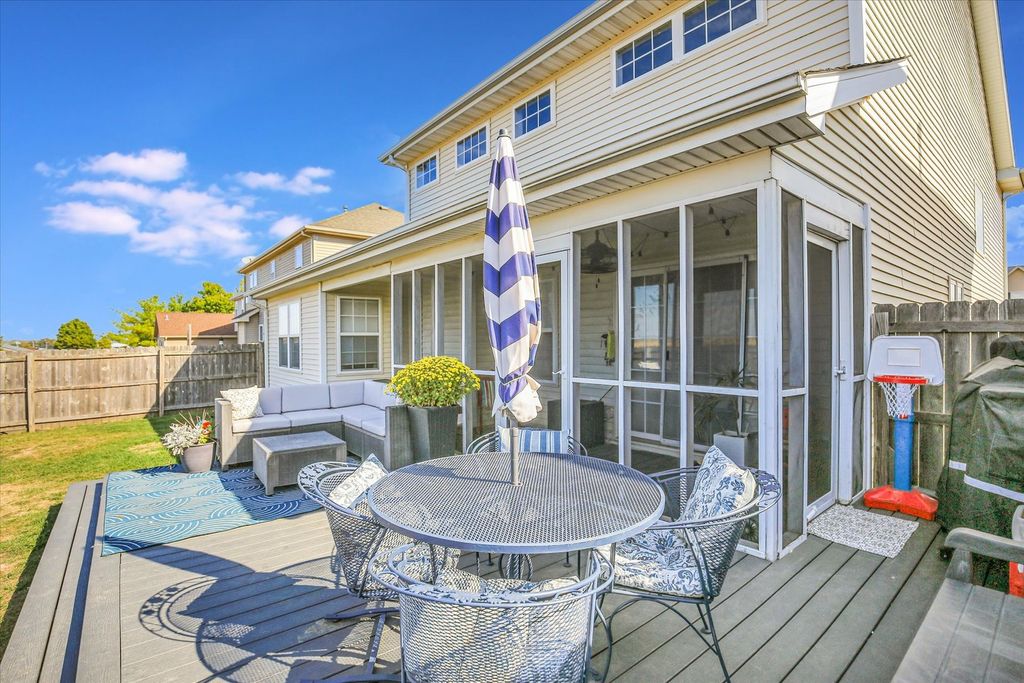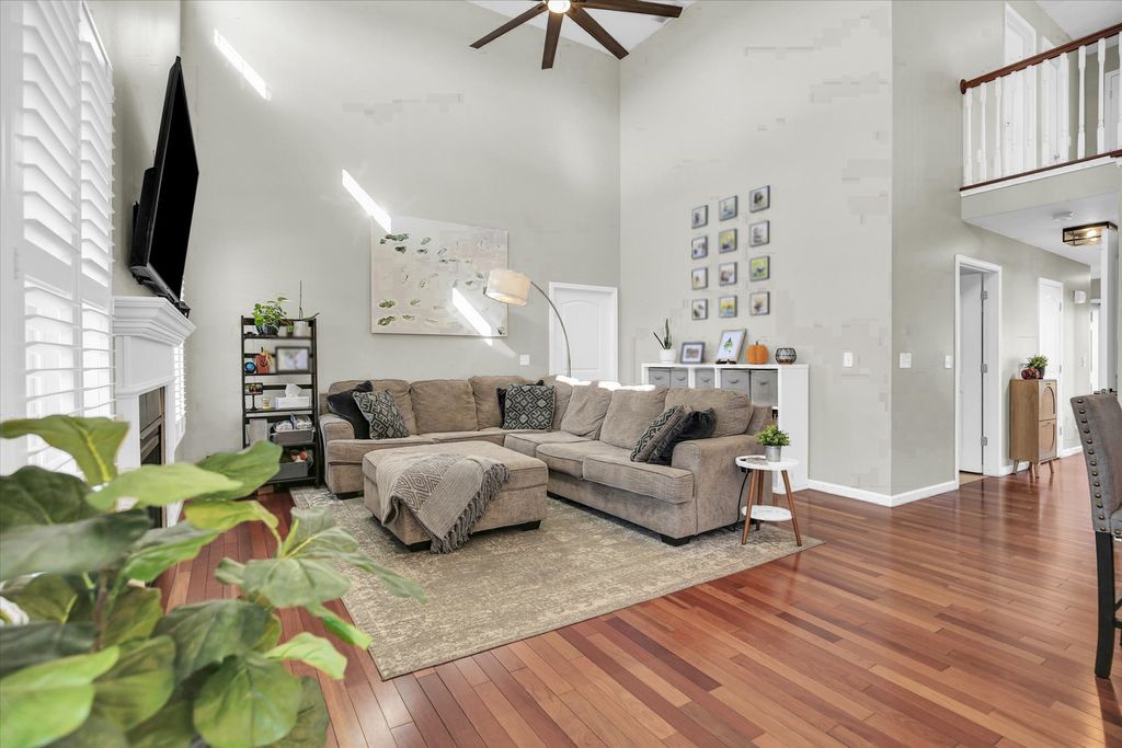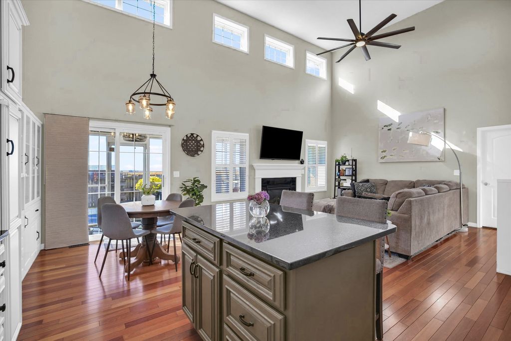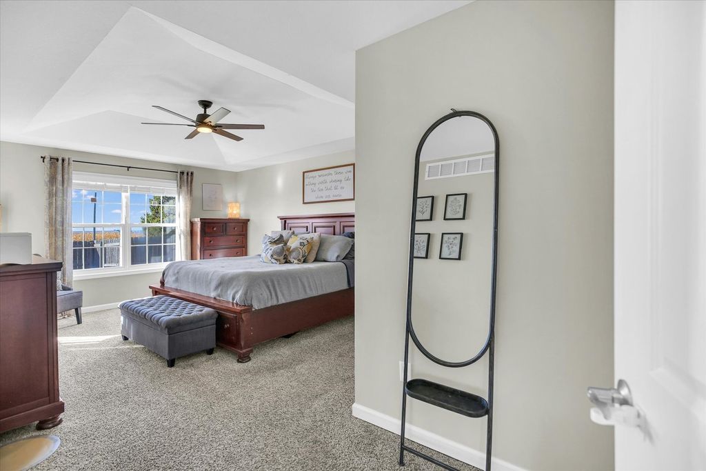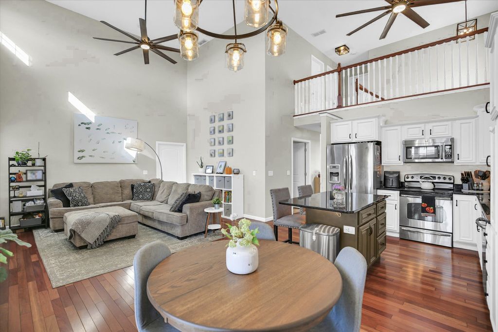 Outstanding, custom built home completely updated in current colors & decor...HGTV style! This 1.5 story, 3 bedroom 3.5 baths home has ~3,000 finished sqft plus another 300 sqft for storage. Traditional exterior with great curb appeal is hiding a WOW, CONTEMPORARY INTERIOR! SOARING 2 story, 20ft CEILINGS, open balconies and A VERY HIP, STYLISH, COOL VIBE... definitely is not your typical "cookie-cutter" floorplan. Enjoy upscale features and fixtures not normally found in this price range. Gorgeous SOLID, BRAZILIAN CHERRY HARDWOOD FLOORING throughout the main living space highlighted by all the natural light streaming through the wall of windows. Modern 5" chunky base trim, high end window treatments, and ceiling fans in the kitchen, living room and all bedrooms. Updated laundry room with new cabinets, sink and newer washer and dryer conveys. BRAND NEW CARPET just installed on the stairs and upstairs hallway is in stock/available for the two bedrooms. Popular, floorplan with kitchen open to the main living space. Super kitchen with strainless appliances, white cabinetry, under counter lighting & solid surface counter tops. Sliding patio door for direct access out back...perfect for cook outs. The spacious great room has a stunning gas log fireplace with a granite surround and full mantle. Extremely hard to find such a large FIRST FLOOR MASTER SUITE, with 11ft. TREY CEILINGS, large walk-in-closet and spa-like bath with a whirlpool tub, separate shower and a double sink granite vanity. FULL FINISHED BASEMENT, with newly added 3rd FULL BATH, a big gathering space/theater room, compete with all equipment. There is also a walk around DRY BAR, with a beverage fridge, and custom granite tops. All set up for the ultimate entertaining space. Outside offers a large FENCED BACK YARD with TREX DECK, a SCREENED IN PORCH, and built in sand box area. EAST FACING FOR GORGEOUS BACK YARD SUNSET VIEWS. Located in the popular Boulder Ridge Subdivision close to the COMMUNITY POND & the lovely SUNSET PARK! You will NOT be disappointed with this one...Call your favorite Realtor to schedule today!