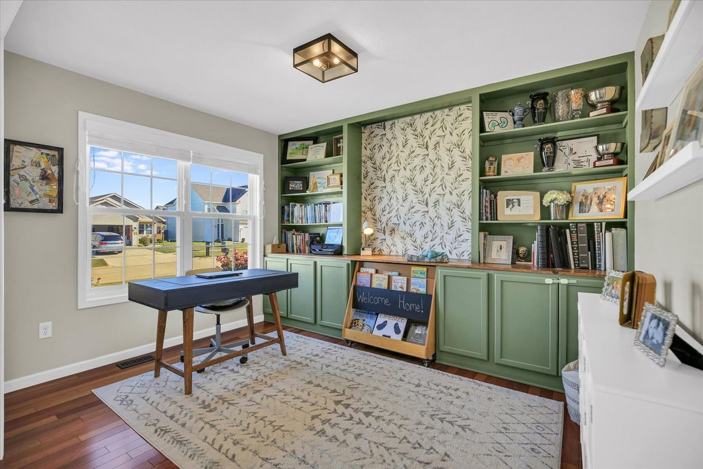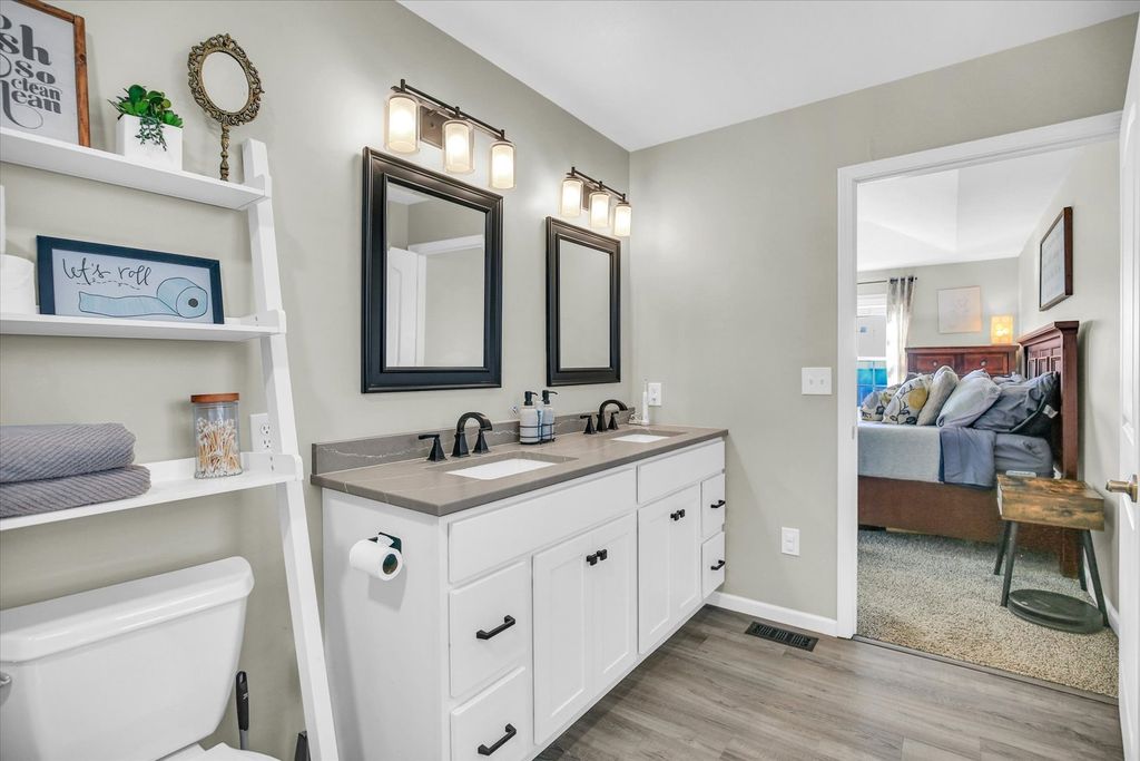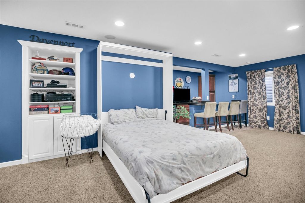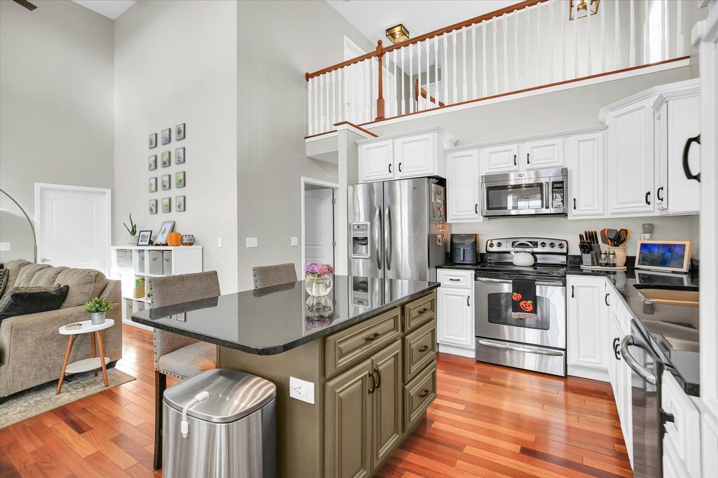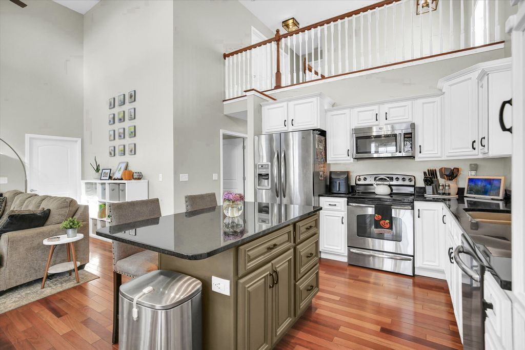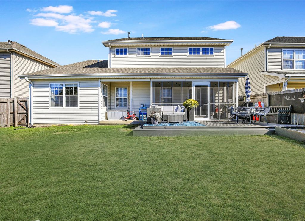 Outstanding, custom built home completely updated in current colors & decor...HGTV style! This 1.5 story, 3 bedroom 3.5 baths home has ~3,000 finished sqft plus another 300 sqft for storage. Traditional exterior with great curb appeal is hiding a WOW, CONTEMPORARY INTERIOR! SOARING 2 story, 20ft CEILINGS, open balconies and A VERY HIP, STYLISH, COOL VIBE... definitely is not your typical "cookie-cutter" floorplan. Enjoy upscale features and fixtures not normally found in this price range. Gorgeous SOLID, BRAZILIAN CHERRY HARDWOOD FLOORING throughout the main living space highlighted by all the natural light streaming through the wall of windows. Modern 5" chunky base trim, high end window treatments, and ceiling fans in the kitchen, living room and all bedrooms. Updated laundry room with new cabinets, sink and newer washer and dryer conveys. BRAND NEW CARPET just installed on the stairs and upstairs hallway is in stock/available for the two bedrooms. Popular, floorplan with kitchen open to the main living space. Super kitchen with strainless appliances, white cabinetry, under counter lighting & solid surface counter tops. Sliding patio door for direct access out back...perfect for cook outs. The spacious great room has a stunning gas log fireplace with a granite surround and full mantle. Extremely hard to find such a large FIRST FLOOR MASTER SUITE, with 11ft. TREY CEILINGS, large walk-in-closet and spa-like bath with a whirlpool tub, separate shower and a double sink granite vanity. FULL FINISHED BASEMENT, with newly added 3rd FULL BATH, a big gathering space/theater room, compete with all equipment. There is also a walk around DRY BAR, with a beverage fridge, and custom granite tops. All set up for the ultimate entertaining space. Outside offers a large FENCED BACK YARD with TREX DECK, a SCREENED IN PORCH, and built in sand box area. EAST FACING FOR GORGEOUS BACK YARD SUNSET VIEWS. Located in the popular Boulder Ridge Subdivision close to the COMMUNITY POND & the lovely SUNSET PARK! You will NOT be disappointed with this one...Call your favorite Realtor to schedule today!