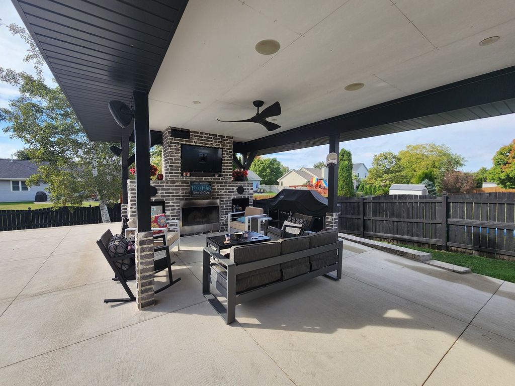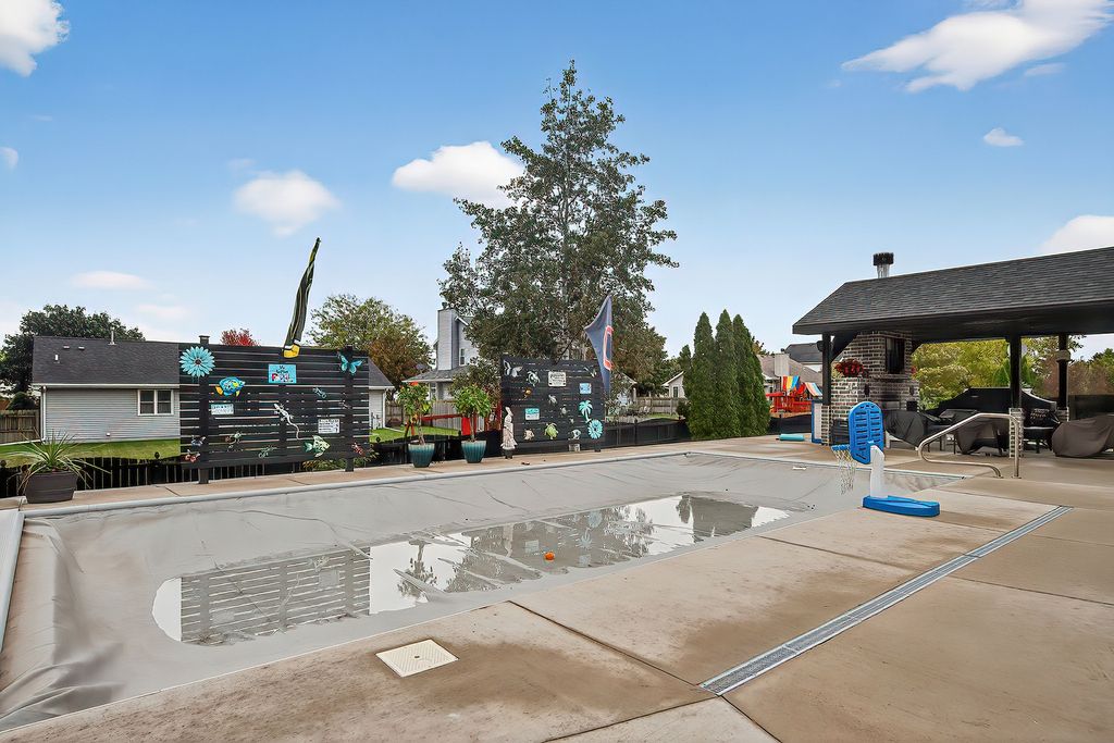 Meticulous ranch home showcasing pride of ownership inside and out! Featuring gleaming hardwood floors, a beautifully remodeled kitchen featuring a walk-in pantry, spa-like new bathrooms on the main level. The vaulted ceiling and gas fireplace create an inviting living space, while the finished basement with a bar, den/office, rec room and storage area are perfect for entertaining. Step outside to your backyard oasis complete with an in-ground pool, outdoor fireplace, and patio. Professionally landscaped yard, newer roof, gutters, windows, and a concrete driveway complete with a side pad for extra parking or toys make this one to see today-this home truly has it all! All it's missing is you- make this your new home for the holidays