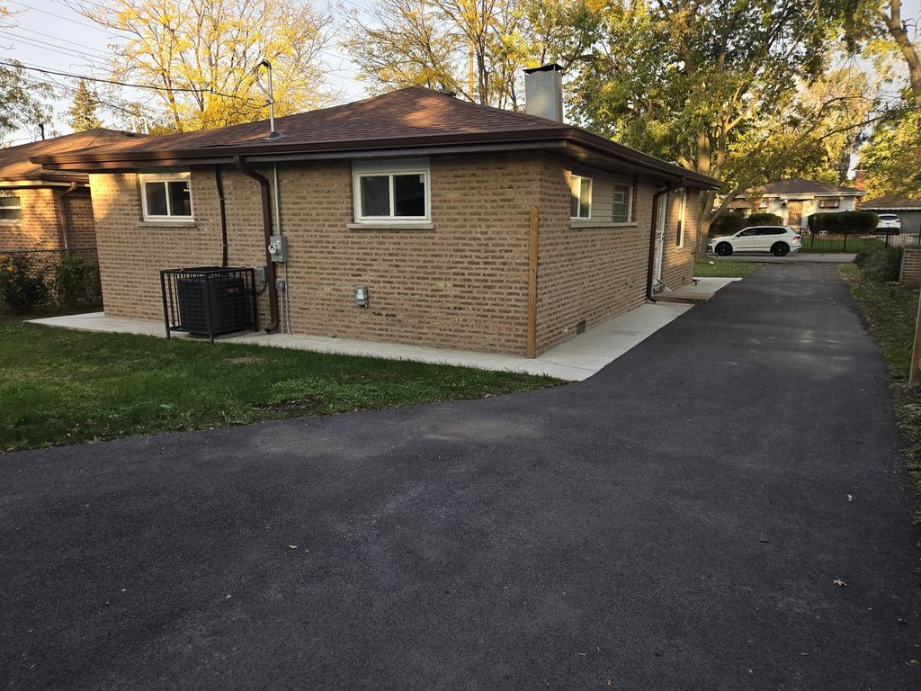 Experience refined living in this fully remodeled 3-bed, 1-bath ranch on a quiet, tree-lined street in Markham. Every inch has been upgraded-brand-new roof, windows, plumbing, mechanicals, central air, and an oversized 2.5-car garage with 10-foot ceilings. Inside, enjoy freshly refinished hardwood floors, quartz countertops, modern cabinetry, 24"x48" large porcelain kitchen tiles, gold-accent fixtures, and a Modern Sputnik chandelier complemented by recessed lighting in the living room. The elegant bathroom showcases gold-accent sink, shower, and vanity features, highlighted by a luxurious tub-and-shower combo with designer tile surround and built-in niche. New doors, privacy fence, paved driveway, concrete walkway, and fresh landscaping complete this move-in-ready home. Conveniently located near parks, schools, public transportation, and major expressways (I-294, I-80, I-57). Modern luxury and quality craftsmanship-priced to sell at $175,000!