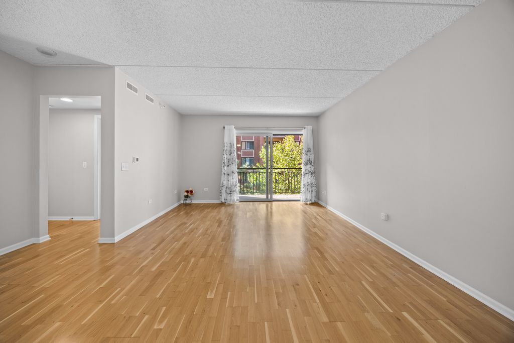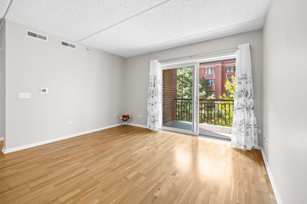 Beautiful condo in a premium location in the HEART OF DOWNTOWN MT. PROSPECT! Walk to restaurants, library, Metra, shopping, and so much more! This lovely condo comes with TWO parking spaces and storage units in the underground heated parking garage. Inside, you will find a spacious entry way, a white kitchen with ample counters and cabinet space, and a separate utility room with a full-sized washer/dryer and a utility sink. The kitchen has room for a table and is open to the dining area and living room, creating an easy entertaining atmosphere and a more spacious feel. Sliding doors lead to a spacious balcony with room to BBQ (no charcoal) or enjoy your morning coffee and relax. Gleaming hardwood flooring, immaculately clean, and freshly painted. The bedroom is nicely sized and features an enormous walk-in closet. HOA includes heated garage parking, heat, water, gas, cable, and internet! Pet-friendly building. Welcome home!