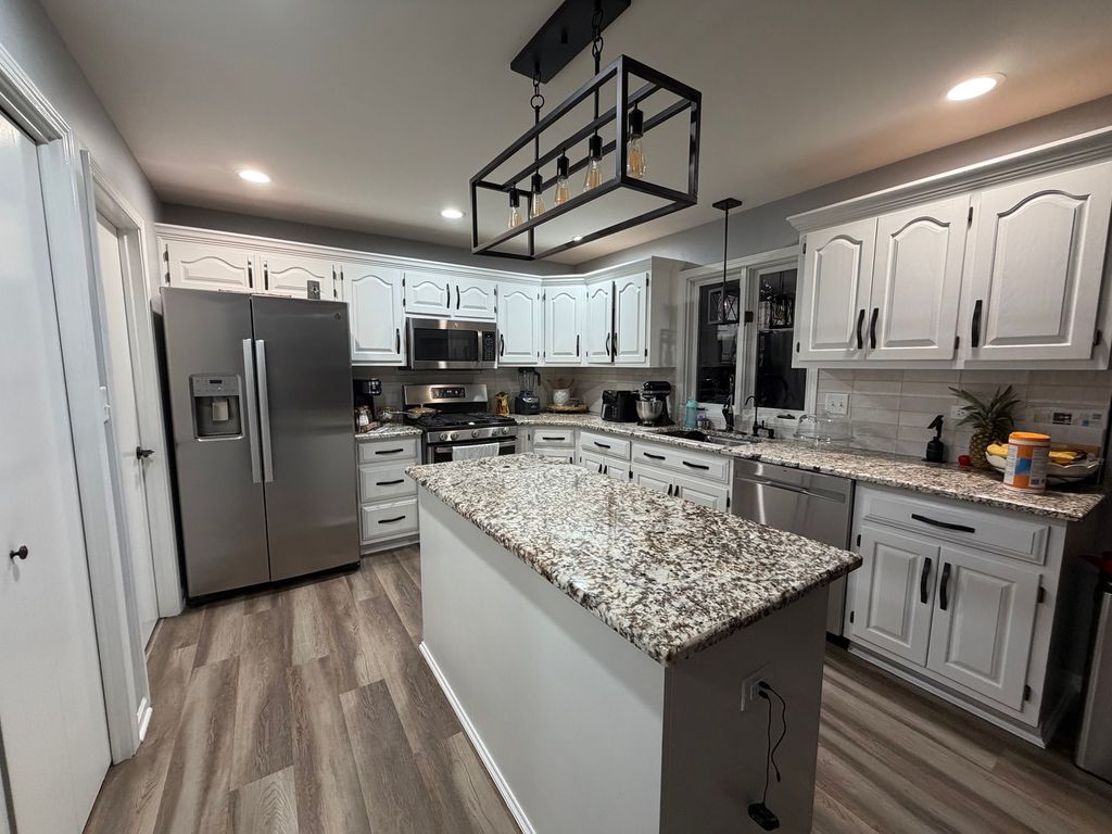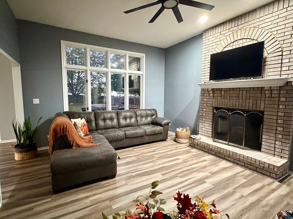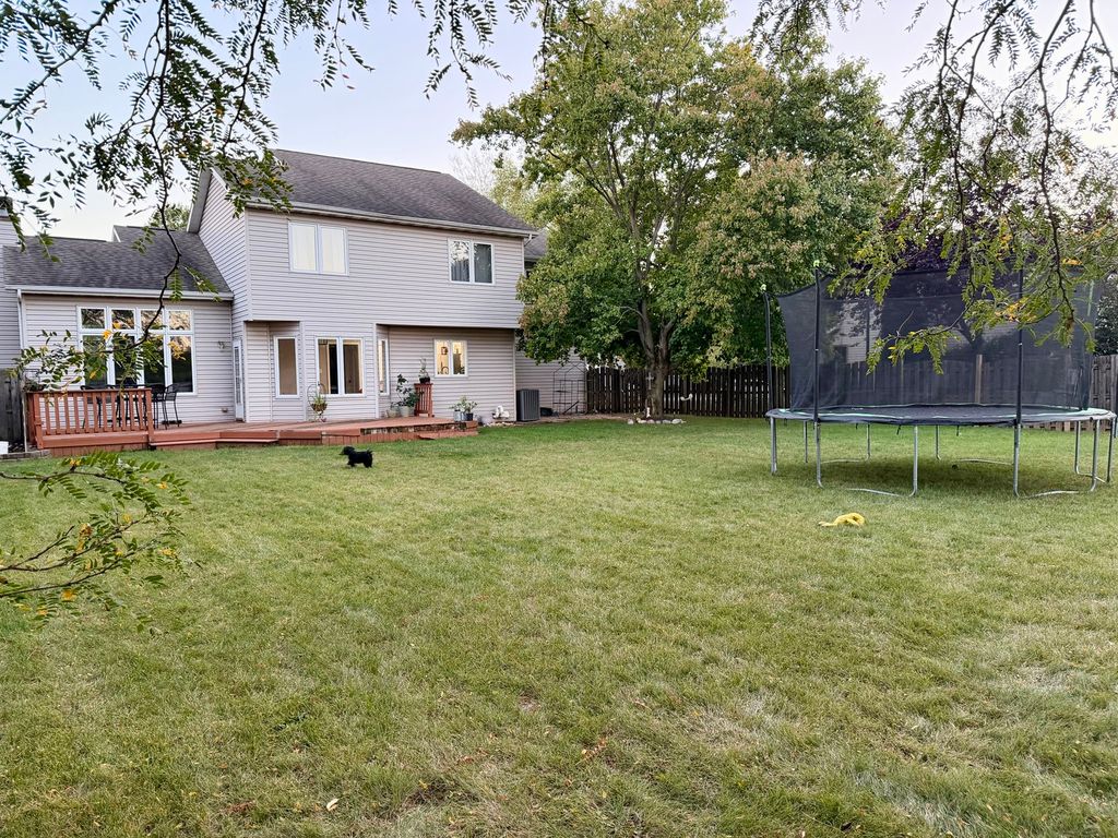 Welcome to this beautifully maintained home in the highly sought-after Indian Trails subdivision! From the moment you enter, you'll be impressed by the abundance of natural light pouring into the spacious living room, featuring soaring two-story ceilings and a striking floor-to-ceiling brick fireplace-perfect for cozy evenings. The large eat-in kitchen is a chef's dream with ample cabinet space, a center island, and a generous double-door pantry. Enjoy your morning coffee by the bay window overlooking the deck and fully fenced backyard-ideal for entertaining or relaxing in privacy. Convenience meets functionality with a first-floor laundry room that leads to a tandem garage (22x30), offering plenty of room for vehicles, tools, and recreational gear. New flooring installed in 2022 flows throughout the atrium, kitchen, living room, and formal dining room, tying the main level together with a fresh and modern touch. Upstairs, you'll find four spacious bedrooms and two full bathrooms. The master suite includes two walk-in closets and a private bath featuring a jetted tub, separate shower, and dual-sink vanity. The entire home has been freshly painted in neutral tones, making it move-in ready. Plus, a full unfinished basement provides endless possibilities for customization-whether you're dreaming of a home gym, office, or entertainment space. Don't miss your chance to own this incredible home in a prime location!