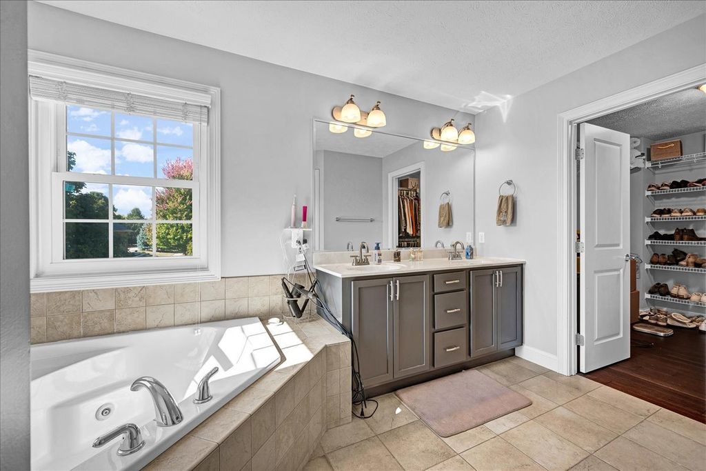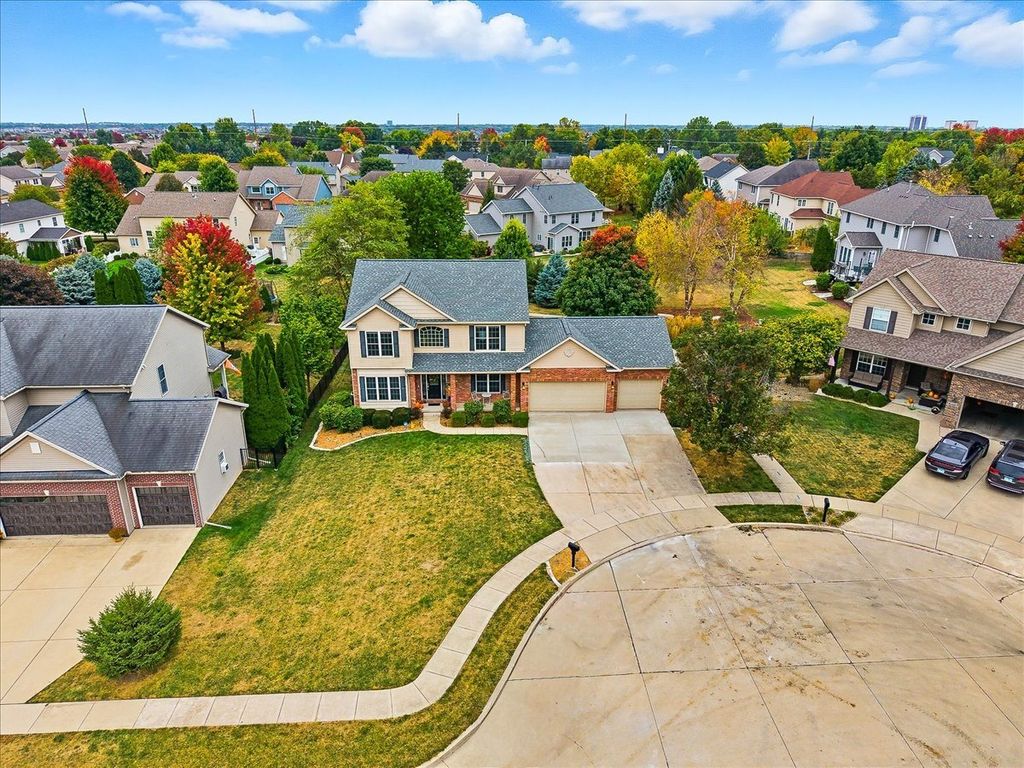 Tucked away on a quiet cul-de-sac, this impeccably maintained two-story home offers the perfect blend of space, and functionality. Featuring 5 bedrooms, 3.5 bathrooms, and a finished basement, this home is move-in ready and built for both comfortable living and entertaining. The bright, open floor plan where natural light fills the large eat-in kitchen, complete with white cabinetry, granite countertops, stainless steel appliances, and an island with seating. The adjoining great room boasts a cozy gas fireplace, while a separate dining room offers a convenient walk-through to the kitchen-perfect for hosting gatherings.The main level also includes a dedicated home office and a spacious laundry room. Upstairs, you'll find an oversized primary suite with a coffered ceiling, walk-in closet, and a luxurious ensuite bath featuring a jetted tub, double vanities, and a separate shower. Three additional bedrooms share a generous hall bath and a versatile loft area-ideal as a study nook, kids' lounge, or reading space.The full finished basement expands your living space with a large family room and an eye-catching custom bar area featuring quartz countertops, white cabinetry, bar seating, and two beverage refrigerators. A fifth bedroom with an egress window and a third full bath make this level perfect for guests or extended family. Additional highlights include a 3-car attached garage and a beautifully landscaped private backyard complete with a custom patio-an entertainer's dream! Recent updates include but are not limited to: Finished basement 2018, 5th bedroom and 3rd full bathroom 2018, new appliances 2020 (refrigerator makes craft ice), new carpet 2018, new toilets 2025, new windows on three sides of the house 2022, new back patio 2023, NEW ROOF 2025, new concrete poured driveway on upper half 2025- PLEASE DO NOT DRIVE ON DRIVEWAY. *Information and measurements deemed reliable but not guaranteed*