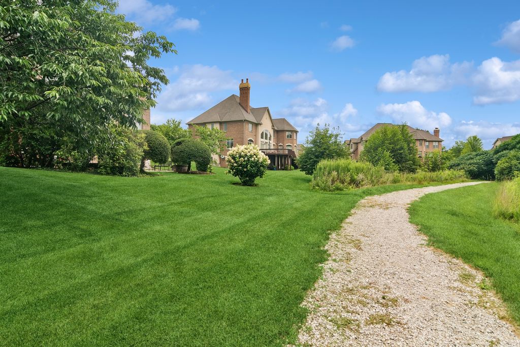 Welcome to luxury living in this newer custom designed home located in Prairie Creek of Kildeer. With it's gorgeous stone and brick facade, and nestled on a premium lot backing to open space, this stately home features spectacular views out every window. Step inside and find key architectural details including 10' first floor ceilings, expansive trim detail, premium hardwood floors and upscale lighting. This magnificent home boasts a formal living room and dining room for easy entertaining. Nearby, a custom-designed office featuring rich millwork and built-ins and is a perfect spot for working from home. The desirable floor plan continues with an open kitchen/breakfast room/family room for everyday living. The custom kitchen features solid wood cabinetry with granite countertops and stone backsplash, new range with 6 burners and a full size oven, ventilation hood, warming drawer, second full size oven, microwave, new built-in refrigerator/freezer and an expansive island with plentiful storage and counter space. The focal point of the family room is the dramatic two story stone fireplace, with spectacular window walls in the family room overlooking the lovely views. A first floor laundry, and the convenience of two powder rooms complete the first floor. Heading to the second floor, pause to enjoy the views from the upstairs hallway overlooking the two story foyer and family room. The luxurious primary suite includes a large primary bedroom with sitting area and fireplace, two custom closets, and a spa-inspired bathroom with jacuzzi, separate vanities, and shower with luxury fixtures. Three additional bedrooms, one with ensuite bathroom and two bedrooms with Jack and Jill set-up, include custom tile and fixtures. There is a second floor laundry room with cabinetry and countertop. The unfinished walk-out basement offers 10' ceilings, a third fireplace, multiple patio doors and windows offering light and views, and is ready for your design imagination. Roughed-in plumbing is available to build out a fourth full bathroom. As you step outside onto the brick patio, enjoy the long views of conservancy and the peaceful nature sounds. A deck off the main floor eating area offers seating space for outdoor living. These meticulous owners have completed the following upgrades; new roof 2023, furnaces/air conditioners 5 years or newer, new pump for Raina hot water on demand tankless water heaters 2024, water softener 2022, built-in Sub-Zero refrigerator 2024 ,new range 2025, Thermador dishwasher 2024, first floor washer/dryer 2025, updated plumbing fixtures. Come experience the best of Kildeer living, all in the highly regarded District 96 and Stevenson High School district. Don't miss this wonderful home!