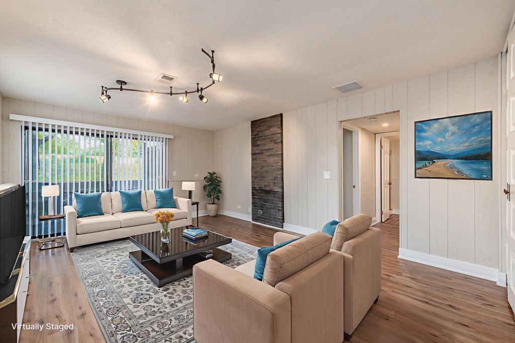 Welcome to this spacious and completely updated three-bedroom, two-bathroom townhome located in the highly sought-after Ventura 21 community! This corner unit offers maximum privacy with only one shared wall. Step inside this beautifully updated home where comfort meets contemporary style. From the moment you enter, you'll be greeted by soaring ceilings and sun-filled living spaces. The main level showcases a bright and spacious living room with high ceilings and large windows, flowing effortlessly into the dining area and updated kitchen with brand new stainless steel appliances. The kitchen offers maple cabinetry and beautiful quartz countertops. Luxury vinyl flooring throughout the entire home. Upstairs, you'll find two bedrooms and a fully updated bathroom with modern finishes. The oversized primary bedroom features a walk-in closet with custom shelving, direct access to the bathroom, and a private balcony. The updated bathroom includes custom tile work and a gorgeous oak wood vanity. The lower level features a third bedroom and another full bath-ideal for guests, a home office, or related living-as well as a family room perfect for kicking back and relaxing. Sliding patio doors off the family room open to a private patio and your own backyard, with a park just steps away, great for playing or entertaining! Plus, a large laundry and utility room offers plenty of extra storage. Additional updates include new light fixtures and ceiling fans. Enjoy all the amenities Ventura 21 has to offer, just a short five-minute walk away, including indoor and outdoor pools, a fitness center, game room, party room, and a nine-hole par-three golf course; all covered by low monthly assessments. Two assigned exterior parking spaces are conveniently located right outside your front door. Furnace and AC (2019) Roof (2015) All kitchen appliances (2025) Luxury Vinyl flooring (2025) freshly painted (2025) All trim work (2025) Washer & Dryer (2025)