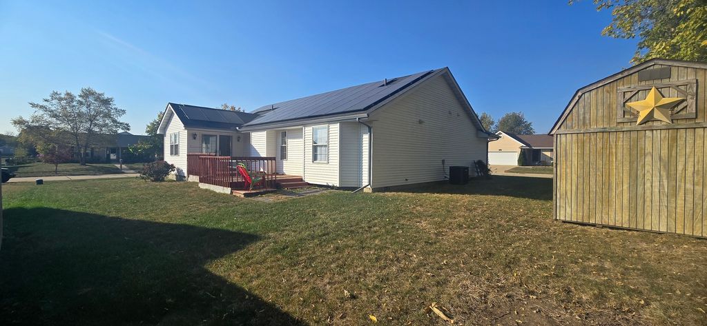 ENERGY EFFICIENT AND it's Ready for YOU to move in today! This home features an open living room with cozy fireplace and vaulted ceilings. Adjoining is the eat-in-kitchen complete with a coffee bar/or regular bar. Access the back yard through the 4 seasons sunroom, and onto the double deck. There are 3 bedrooms and 2 full baths, one is a nicely sized bedroom suite with a private bath and walk in closet. The laundry is off of the kitchen and leads to the 2 car attached garage, AND includes washer and dryer! Take advantage of the Energy Efficient Windows, NEW Roof 2022, and the Solar Panels. No gas to home, ALL electric ENERGY savings in this home! Various other updates throughout to enjoy too.