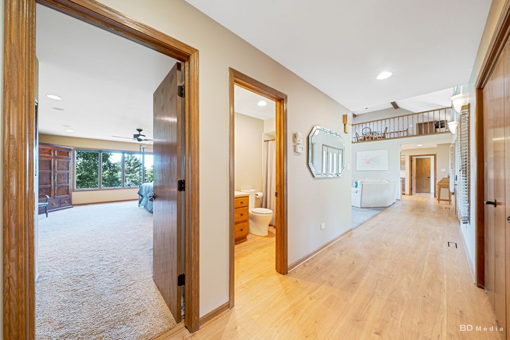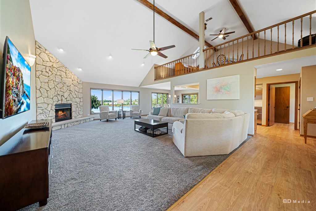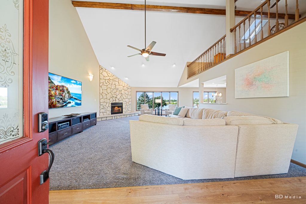 Stunning 3 bedroom 3 bath Ranch!!! Immaculate and move-in ready, this beautifully maintained home offers the perfect blend of comfort and style. The open concept layout features a warm and inviting living area with a cozy fireplace and bright loft ideal for an office or guest space. The updated kitchen showcases a large, high end refrigerator, perfect for everyday living. The almost 2,500 sq ft fully finished walkout basement is an entertainers dream. Complete with a bar and fully functioning home movie theater. This home offers easy access to the attic from the loft and an over abundance of storage throughout. Outside, enjoy a screened porch, beautiful landscaping, mature trees, and a serene pond view across the expansive 1 acre lot. The 3 car garage provides plenty of room for vehicles, tools or hobbies. A Must-See property that shines inside and out!