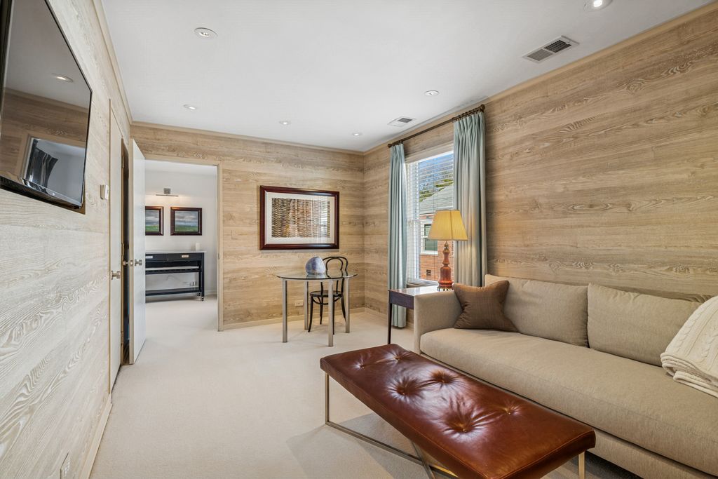 Rarely available and beautifully updated, this mid-century modern gem is filled with light and sophisticated style. A wall of windows floods the home with sunshine, highlighting gleaming hardwood floors and open, airy spaces. The custom kitchen makes perfect use of every nook and cranny, combining smart design with timeless finishes. The spacious primary suite overlooks the front yard and features a walk-in closet and a luxurious marble-finished bath with walk-in shower and refined marble sink. A wonderful den or office serves as a versatile walkthrough to the second bedroom. The lower level offers additional living space for a family room, guest area, or workout room, along with laundry and ample storage. Custom window treatments, a one-car attached garage, and thoughtful details throughout make this home move-in ready. Light, design, and comfort-perfection truly lives here. Nestled in a wonderful neighborhood just moments from Hubbard Woods and downtown.