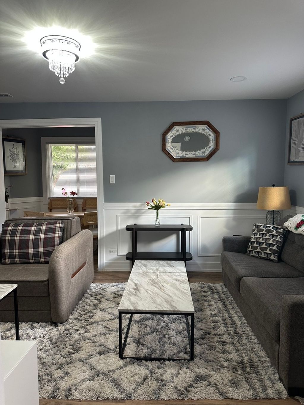 Welcome to this beautifully updated 4-bedroom, 2-bathroom home that perfectly blends modern elegance with timeless charm! Step into a bright and inviting living room featuring a sleek electric fireplace and a stunning skylight in the dining area that fills the space with natural light. Wainscoting adds a touch of sophistication and character. The fully renovated interior offers spacious bedrooms, stylish bathrooms, and thoughtful finishes throughout. Enjoy outdoor living in the generously sized fenced yard. Plus, a detached garage adds convenience and storage. This home is conveniently located near schools, shopping, and dining, not to mention it is a move-in-ready gem you won't want to miss!