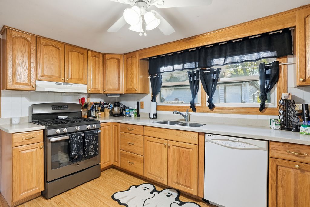 WELCOME HOME! Whether you're a first-time buyer or looking to simplify with easy, one-level living, this beautifully cared-for ranch is the perfect fit. Featuring 3 bedrooms and 1 full bath, this home has been lovingly maintained and thoughtfully updated. The kitchen shines with Corian countertops and all appliances included, while the updated bath adds a fresh touch. You'll love the character of the original parquet flooring in the bedrooms, each with its own ceiling fan for comfort. Step outside to enjoy a spacious deck and a large, mostly fenced yard-perfect for relaxing or entertaining on this nearly quarter-acre lot. New Furnace