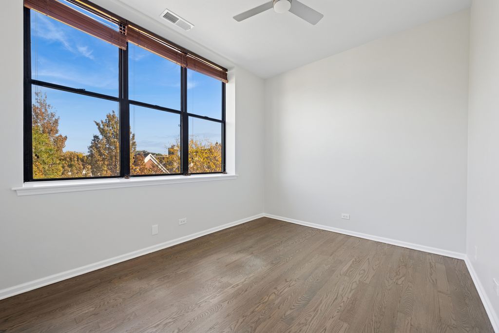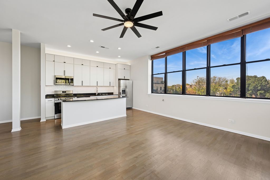 Stunning total rehab of 3rd floor N & E facing 2BR, 2Bath corner soft loft in boutique elevator building, located on quiet Lincoln Park residential cul-de-sac E of Ashland, adjacent to Wrightwood Park. All upgrades, completed in October of 2025, include, but not limited to, new kitchen cabinets, custom lighting, tile, appliances, fixtures, new bathroom vanities, sinks, and faucets. This unit, with full height walls and doors on both bedrooms, boasts 11' ceilings, a woodburning fireplace with gas starter, oversized windows with unobstructed park and neighborhood views, a large laundry room with extra storage, and private deck with newer maintenance free composite. This professionally managed pet friendly building features a butterfly intercom system, security cameras, a common storage area located on same floor as unit with private cage, an indoor attached garage space. a common roof deck with incredibly dramatic 360 views of entire city, and private secure gated access into Wrightwood Park. Month long Otis elevator replacement project ended November 3. The HOA includes high speed internet, wifi, and high end cable tv package.