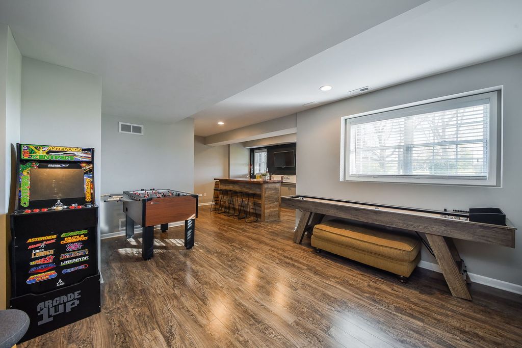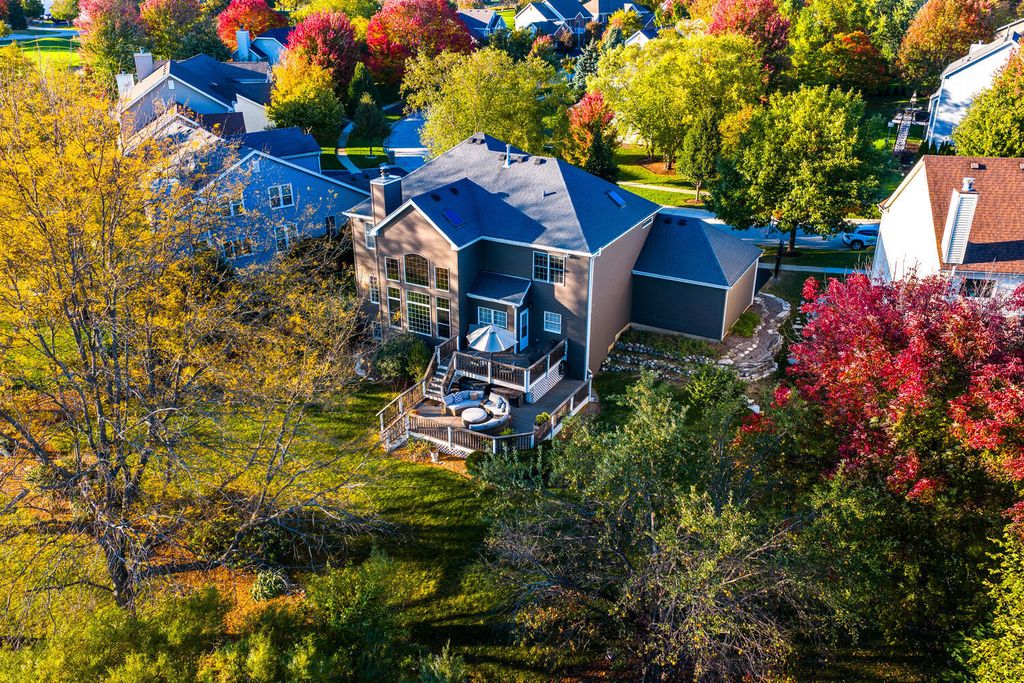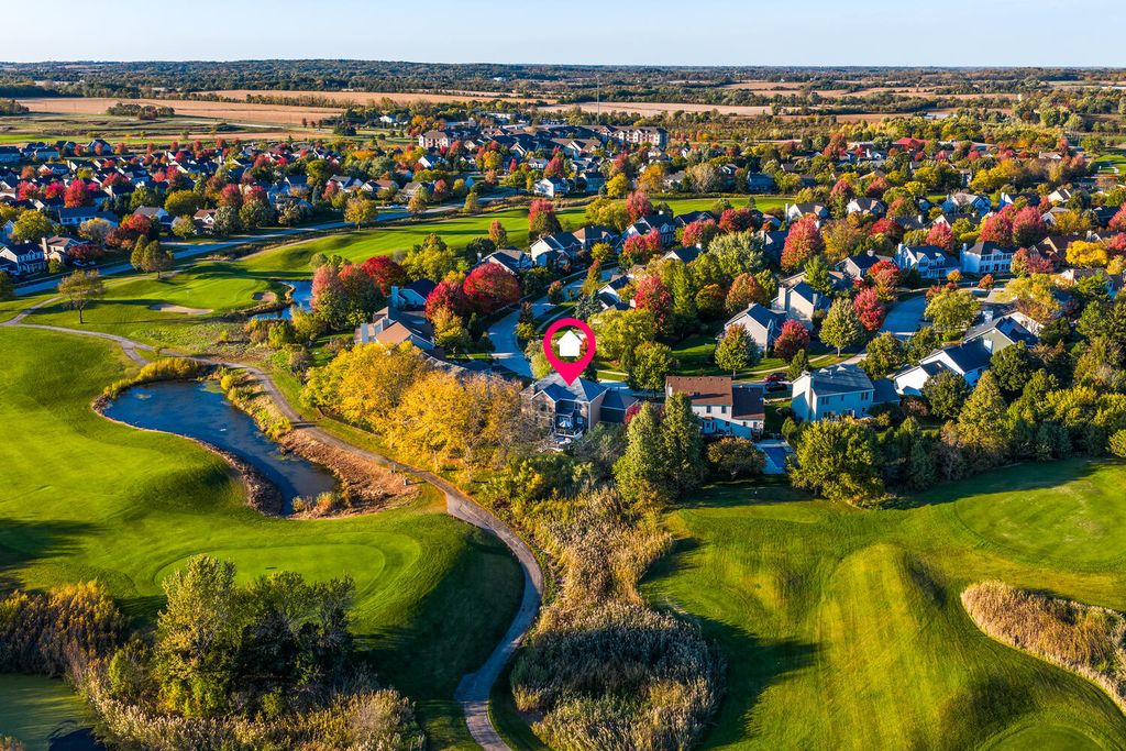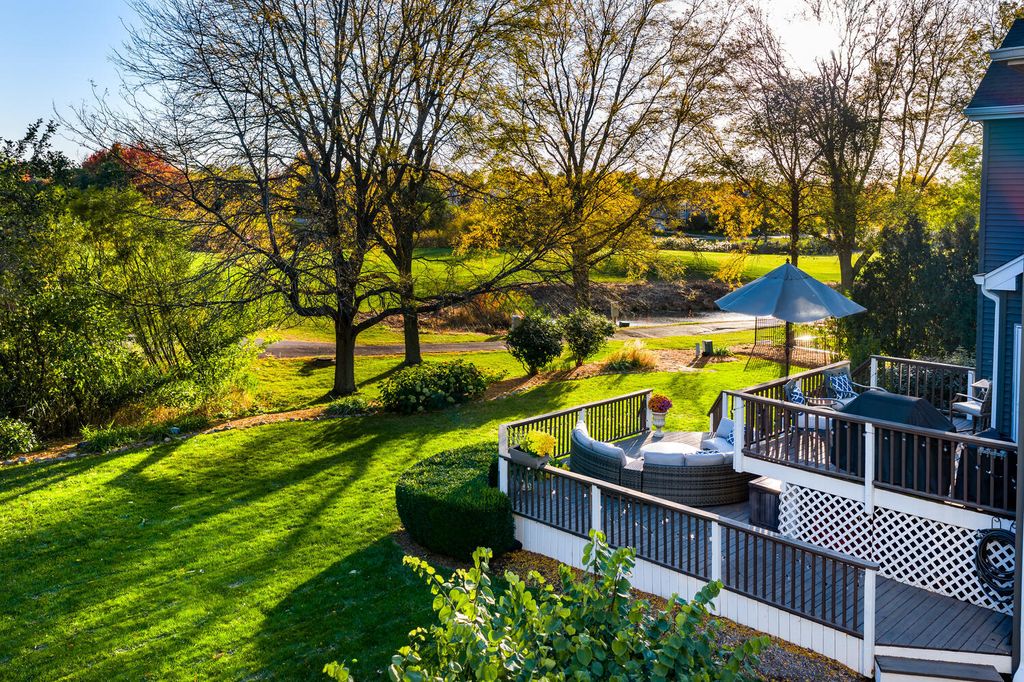 Mill Creek is one of Geneva's most popular communities, known for its tree-lined streets, friendly atmosphere, and incredible amenities. This beautifully maintained home will not disappoint! It is situated on a premium golf course lot with stunning views and a private backyard that feels like a retreat, complete with mature landscaping and an expansive two-tiered deck perfect for relaxing or entertaining. Inside, warm hardwood floors and abundant natural light create an inviting feel throughout. The family room is the heart of the home and features soaring two-story windows that flood the space with natural light, and beautifully frame sweeping views of the serene backyard and 18th hole. The spacious kitchen offers generous cabinet space, an island with seating, and an open flow to a dining area and that gorgeous family room. A main-floor office overlooks the backyard, and is the ideal spot for those who work from home. A formal dining and living room, along with a convenient laundry/mudroom (with cubbies/dropzone) round out the first floor. Upstairs, the hardwood staircase leads to a large landing and a bright, spacious primary suite with a walk-in closet and plenty of room to unwind. Three additional bedrooms and a recently renovated full bath complete the upper level, offering flexibility for guests, hobbies, or quiet spaces to retreat. The finished basement adds even more versatility. You'll love family time, or entertaining friends in this wonderful space complete with a bar, recreation/game area, large family room, fifth bedroom, and full bath, which creates the perfect setup for guests or extended stays. From golf and tennis to pickleball courts, baseball fields, parks, playgrounds, ponds, and walking trails, Mill Creek offers something for everyone. With a neighborhood ice cream shop, sledding hills in the winter, a community pool (with affordable membership options) and the elementary school just a short distance away, this community truly has it all...location, lifestyle, and this outstanding property brings it all together!
