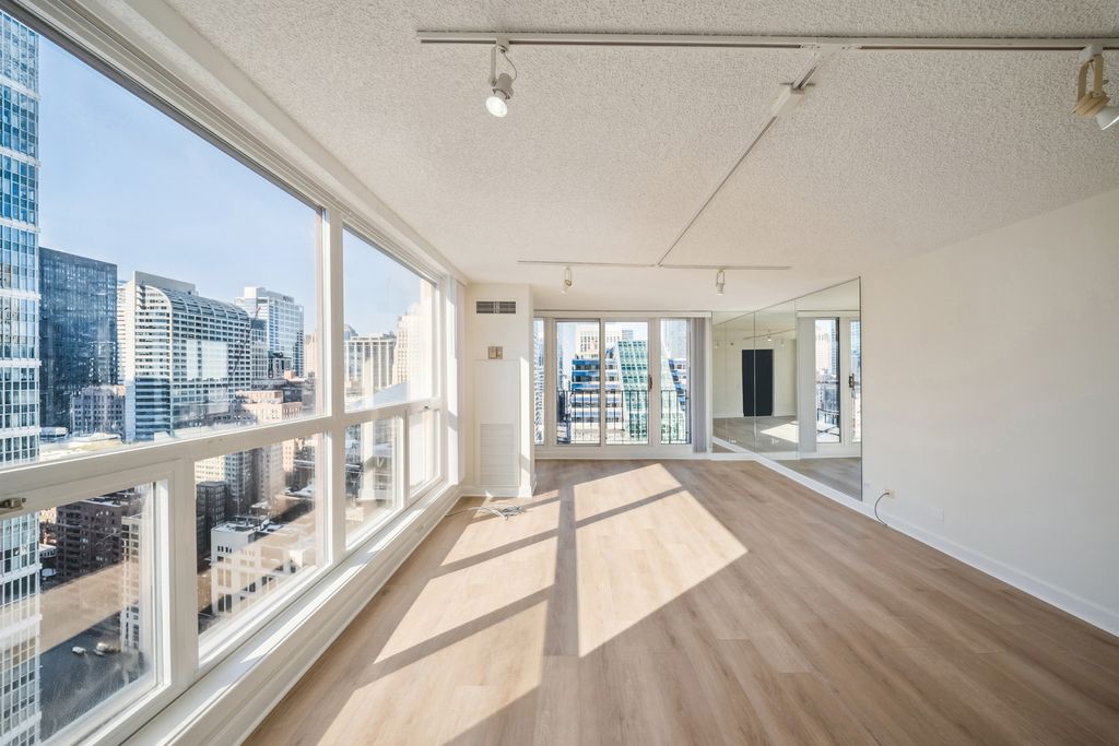 UPDATES as of October 2025 include: high performance durable 7-inch-wide luxury water-resistant vinyl flooring, a new GE refrigerator, new paint on all walls, doors, trim, baseboards, and ceiling, a new light fixture in the second bathroom, new light filtering vertical blinds throughout, and new custom closets. Ready for immediate occupancy, experience life in the vibrant heart of downtown Chicago, just a short walk from all the city has to offer! This UPDATED high-floor open-concept design features a wall of windows in the living/dining area and includes brand new high performance durable 7-inch-wide luxury water-resistant vinyl flooring throughout the living/dining space and both bedrooms, fresh paint throughout including all walls, doors, trim, baseboards, and ceiling, new light filtering vertical blinds throughout, new custom closets, and two opulent marble full baths with full-height mirrors and Brookhaven cabinetry! Indulge in a contemporary kitchen with newer stainless GE appliances including a brand-new refrigerator, tall Brookhaven dark cabinets for extra storage, custom tile flooring, stylish granite countertops with a custom tile backsplash, and a large single bowl sink. Savor stunning city views from the living/dining area and both bedrooms, enhanced by a private balcony and endless views off the living room. The living/dining area is further enhanced by overhead track lighting that creates a warm atmosphere. The building boasts full amenities, including a 24-hour doorman, a gym, a sundeck, and on-site laundry facilities! Located just steps away from every train line in the city, you will find an array of fantastic bars and restaurants, such as City Winery along the Chicago Riverwalk, RPM, and many more. Enjoy endless shopping on Michigan Avenue, entertainment options like the Goodman Theatre, and convenient access to Lake Michigan, the riverwalk, grocery stores, gyms, and the highway.