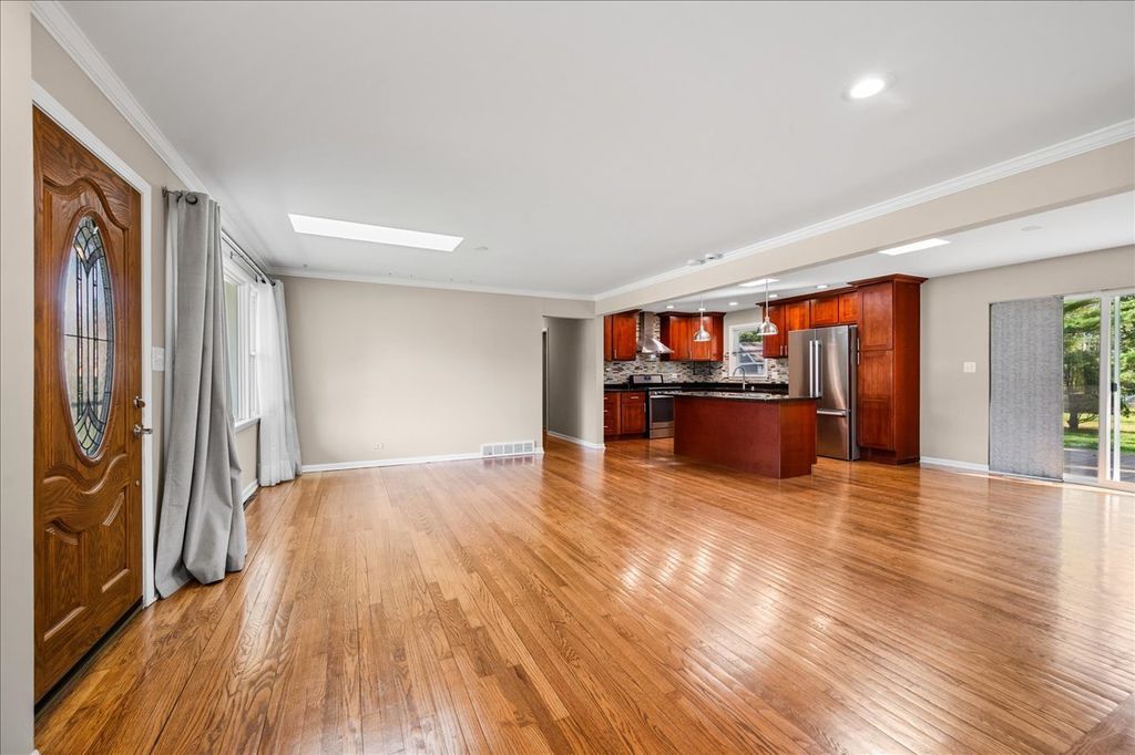 Welcome to a home where every detail has been curated for comfort and style. This meticulously maintained brick ranch, rests on a sprawling backyard of "village green" that offers a rare combination of a well-positioned living space/layout. Inside, you will find hardwood floors guide you through a fluid open-concept floor plan. The chef's kitchen is on trend, boasting maple cabinetry, granite countertops, and a central island with a breakfast area for a tailor-made table. The kitchen overlooks the dining and family rooms, and all three areas are drenched in natural light from skylights above. The generous master suite is a true sanctuary, complete with a walk-in closet and a spa-like ensuite bathroom. Three additional well-appointed bedrooms on the opposite side of the home provide plenty of room for family and guests. The basement level is fully finished utilizing the full length of the house. There is a laundry room, and plenty of storage for any purpose on the basement level. You will be happy to park your car in a 2.5 car garage with storage shelves build in. Step outside to your private oasis-a fenced yard with an extended deck, perfect for various gatherings or quiet mornings. In 2017 the home underwent an extensive renovation making it a more modern and efficient open concept property. In addition to all of the upgrades and updates this home offers, there is a newer roof, furnace, central air, skylights, and windows to ensure peace of mind for bigger ticket maintenance items in the future. Need ultra clean water to shower in? There are 2 large Culligan Water Filtering systems in the basement, as well as a Culligan reverse osmosis system in the kitchen. Updates include: Extensive remodel with master bedroom addition (2017), Refrigerator: 2022, Kitchen and Bathrooms (2017),Oven/stove: 2017, Oven hood: 2017, Dishwasher: 2023, Water filters/softeners: 2019, Water heater:2016 Windows: 2017, New Ejector pump: 2025, Sump Pump: 2023, Watchdog/battery pack:2023, Shed: 2022, Furnace: 2017, Washer/Dryer: 2023 LIFESTYLE:203 COLDREN DRIVE is in close proximity to downtown Arlington Heights and fine eateries, Woodfield Mall, Ohare Airport, Metra Train Stations, Prospect Heights Park District Pool, River Trail Nature Center, Ned Brown Forrest Preserve, Busse Woods, Chicago Executive Airport. This home is part of the River Trails Park District that features the Rob Roy Public Golf Course and Rob Roy Country Club/Event Venue, as well as the Prospect Heights Parks and Recreation/Library District. Top Notch Schools! This community is outstanding. This is a remarkable opportunity to own a home that has it all: timeless design, modern upgrades, and an incredible outdoor setting. Schedule your private showing of this remarkable home today.