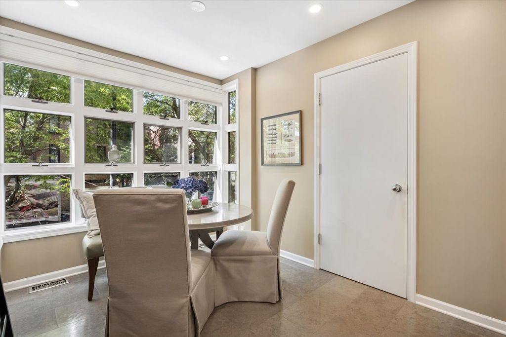 Rarely available private end unit townhome within Eugenie Terrace! This gated community is located in the heart of Old Town and East Lincoln Park. This extra wide home lives like a single family. It has been meticulously maintained and has had only had 2 owners since being built! 1 of only 9 townhomes with direct access to Wells Street. Another unique attribute is the attached TRUE 2 car heated garage. Very versatile floor plan that can accommodate different living scenarios. First floor family room with fireplace, full bathroom, wet bar and a private landscaped outdoor terrace with access to Wells Street. This room can easily convert to a 4th bedroom or in-law suite! 2nd floor open layout includes a large living room with fireplace and separate dining room. Beautiful and bright eat-in kitchen featuring abundant cabinetry, custom counters and breakfast bar peninsula. Stainless steel appliances include a newer Sub Zero fridge, Thermador double oven, Bosch cooktop, microwave and dishwasher. Kitchen table sits in front of a wall of windows overlooking gorgeous tree lined Wells Street. The laundry room equipped with a side by side washer/dryer and cabinetry along with a powder room round out this floor. The staircase with skylight above leads to 3rd floor which has 3 bedrooms and 2 full baths. Exceptionally large primary suite features a walk-in closet with custom organizers. All marble bathroom with dual sink vanity, linen closet, whirlpool tub with skylight above and separate shower. The 2nd bedroom offers generous closet space outfitted with organizers. The 3rd bedroom wall was opened up by the previous owner and is currently being used as a large home office with a full wall of built-in cabinetry. It can easily be converted back to a bedroom. The guest bathroom is newly updated. Private attached 2 car garage with tons of storage. Common area outdoor pool with recent updates is open to all Eugenie Terrace residents. All newer mechanicals. Exceptional school district which includes: Francis Parker, Lincoln Elementary, Walter Peyton, Latin, Lincoln Park HS and more. Exceptional location - Lincoln Park, farmer's market, Lincoln Park Zoo, conservatory, North Ave Beach, Old Town strip full of restaurants, shopping and transportation. Equinox gym is directly next door!
