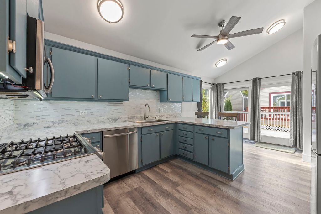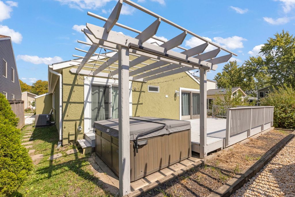 Welcome to this beautifully renovated 3-bedroom, 2-bath Ranch home in the sought-after Green Trails community-one of Green Trail's charming and rare compact patio homes. The stylish kitchen features new stainless steel appliances, a peninsula island, and access to a spacious deck for outdoor enjoyment. An open living room with a cozy fireplace flows into a bright newly added sitting area and dining room, creating the perfect space for gathering with family and friends. Luxury vinyl plank flooring runs throughout, while the primary suite offers a walk-in closet and spa-like bath with a soaking tub, shower, and double vanity with marble countertops. With updated finishes throughout, this home is move-in ready and ideally located near parks, trails, lakes, shopping, dining, and top-rated District 203 schools.