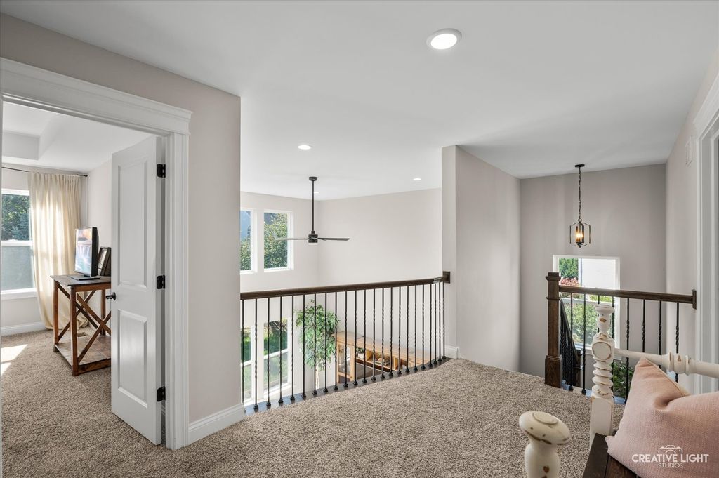 Better than new! Spacious 4 bedroom, 2.1 bath two story home with 9 ft basement, plumbed for future bath and 3 car tandem garage boasts of its many upgrades. The foyer is open to the dining room and offers multiple use options with the adjoining flex/study, two story great room that is open to the eat-in kitchen with white cabinets, large island with breakfast bar, stainless steel appliances, upgraded vent hood, double oven and pantry, mudroom has built in coat rack/ bench and connects to the garage, convenient 2nd floor laundry room with an open railing to the two story great room, Primary suite has tray ceiling, spacious closet, double bowl sinks and large shower in the luxury bathroom. Additional bedrooms are all generously sized. Large back yard with patio. Homes built with smart home technology. Must see, neutral decor, Move-in condition!
