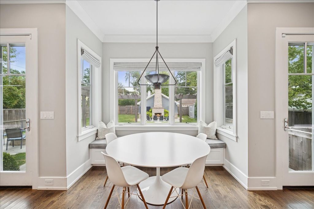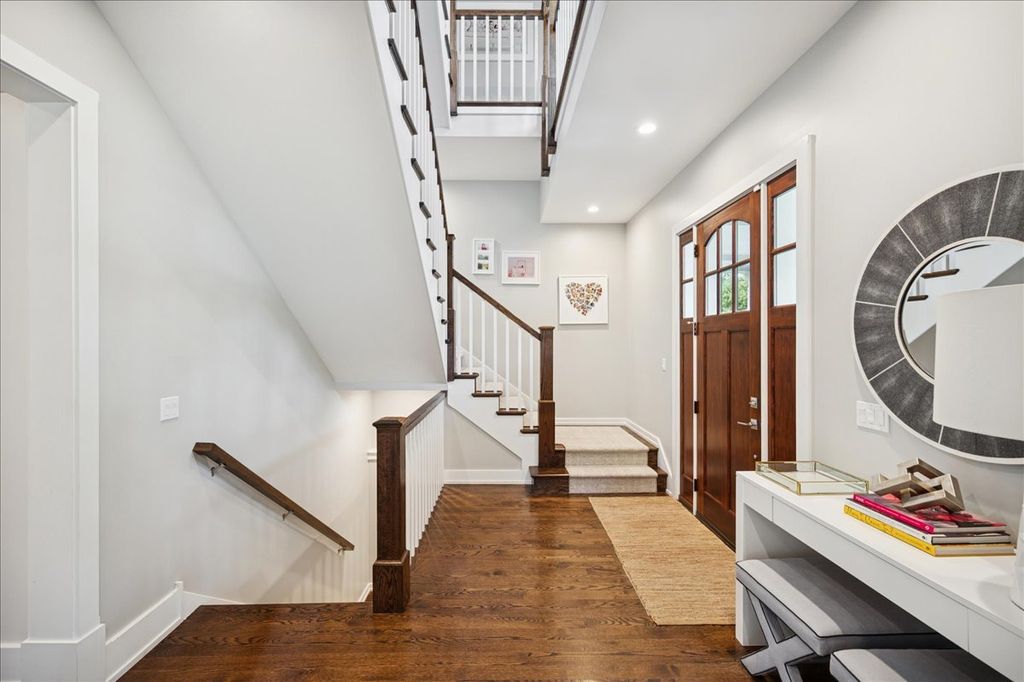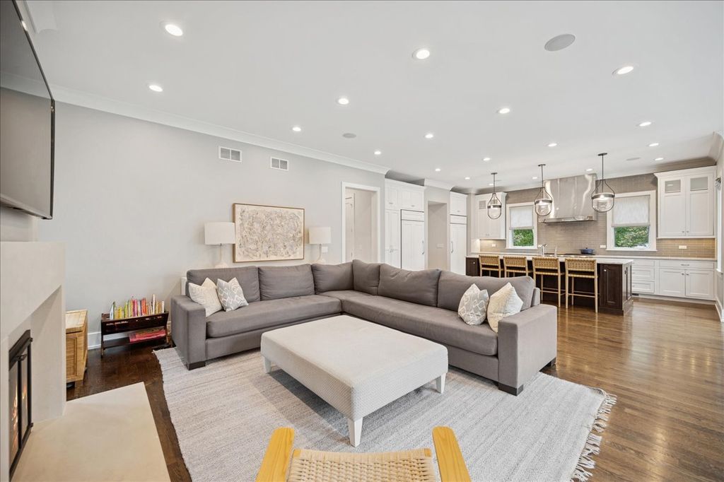 Nestled in the vibrant heart of Winnetka, 1004 Oak Street is a 2015-built, Nantucket-style masterpiece that redefines luxury living. Perfectly positioned just steps from the train, charming downtown, acclaimed restaurants, serene parks, and top-rated schools, this custom home on an oversized corner lot seamlessly blends timeless elegance with everyday functionality. The exterior stuns with classic cedar shake siding, premium windows, lush landscaping, and a fully fenced yard. The private backyard retreat is ideal for year-round entertaining, featuring a built-in outdoor kitchen, custom firepit, secondary fireplace, outdoor TV, multiple bluestone patios, and beautifully designed green space. Inside, refined craftsmanship abounds-10-foot ceilings, rich hardwood floors, detailed custom millwork, and integrated speaker systems set a sophisticated tone throughout the main level. The open-concept floor plan includes a gracious living room and formal dining room, ideal for elegant entertaining. A handsome office with custom built-ins provides a quiet workspace, while a spacious mudroom adds everyday convenience. Anchored by a fireplace, the inviting family room flows effortlessly into the chef's kitchen, which features soft-close cabinetry, an oversized island, dual Sub-Zero refrigerator and freezer, Wolf double oven, built-in microwave, and a sun-drenched breakfast room. Upstairs, the second and third floors offer four spacious bedrooms, each with en suite bathrooms and custom closets. The luxurious primary suite includes dual walk-in closets, a private balcony, and a spa-inspired marble bathroom with soaking tub, oversized shower, dual vanities, and marble countertops. A full second-floor laundry room completes the upper level. The finished lower level elevates the home's entertaining appeal, featuring a sleek bar, wine room, large recreation space, fitness room, fifth bedroom, full bath, and abundant storage. With classic design, generous living space, and a premier in-town location, 1004 Oak Street is a rare sanctuary in one of the North Shore's most coveted communities.