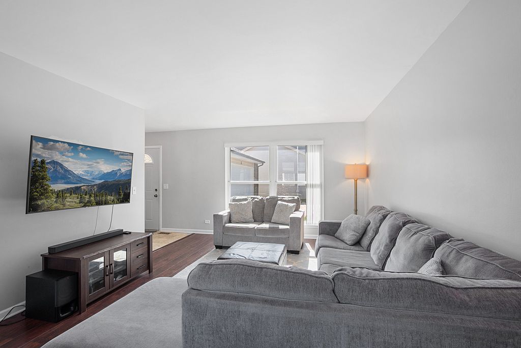 Welcome to this beautifully cared for ranch home, situated in a cul-de-sac. As you step inside, you are greeted by newer gleaming wood laminate flooring (2017) in the spacious living room. The living room is highlighted by a large picture window that brings in an abundance of natural light. The eat-in kitchen features many wood cabinets, counterspace, tile backsplash, new dishwasher (2022), and new disposal (2023). The laundry room has a cute pocket door. Washer and dryer included. Newer dryer in 2023. All three bedrooms are nice sizes each featuring beautiful wood laminate flooring. The primary bedroom includes double closets. The full hallway bathroom with corian countertops and tub. Attached 2 car garage has a new garage door in 2021 and additional built-in storage. Sprawling concrete driveway. Step outside and enjoy the backyard patio, perfect for entertaining. Walking distance to the parks. Near shopping, dining, and entertainment. Hoffman Estates High School District! This home is move-in ready and is a must-see!