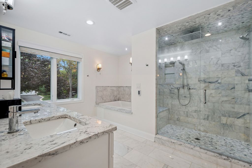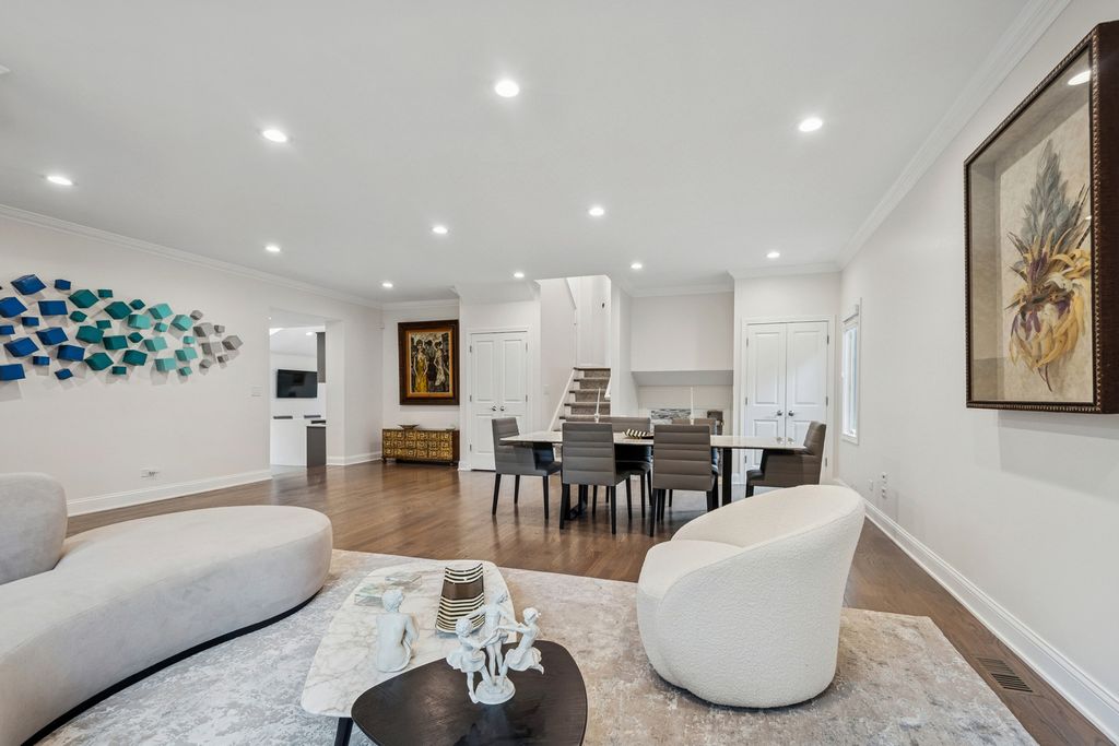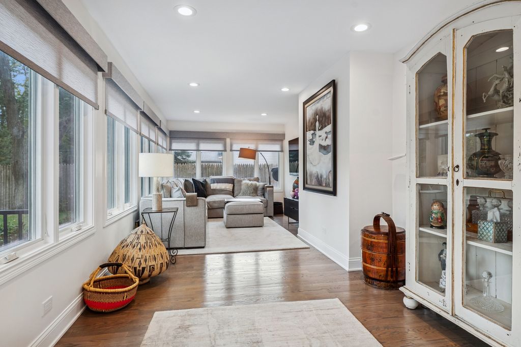 Impeccably renovated and thoughtfully upgraded, this 4,225 sq. ft., 4-bedroom, 5-bathroom home in northern Highland Park perfectly blends modern luxury with timeless design. Taken down to the studs during a complete 2019-2020 renovation, the home offers all-new systems including HVAC, plumbing, roof, and appliances, providing move-in-ready peace of mind. The main level showcases an elegant open layout anchored by a showstopping chef's kitchen with a 15-foot island, Sub-Zero refrigerator/freezer, Wolf six-burner range with dual ovens, Bosch dishwasher, Thermador drawer microwave, beverage refrigerator, and farmhouse sink. Recent enhancements include Waterstone brushed brass fixtures and matching luxury hardware. Red oak hardwood floors in a modern gray finish run throughout, with recessed lighting, Lutron dimmers, and custom Hunter Douglas motorized blinds to enhance both comfort and sophistication. The upper level features a luxurious primary suite with vaulted ceilings, a spa-quality bath, and generous closet space, while each additional bedroom includes a private full bath. A third-floor laundry room adds convenience, and the finished lower level offers flexible living space for a recreation room, gym, or fifth bedroom. A Trex deck with built-in lighting and a natural gas fire table creates a seamless indoor-outdoor flow. Additional highlights include Nest thermostats, a SimpliSafe security system, a spacious mudroom with built-ins, a fully fenced backyard, and an attached two-car garage. Ideally situated near parks, restaurants, the train station, and Fort Sheridan's scenic lakefront trails, this home offers the best of Highland Park living.