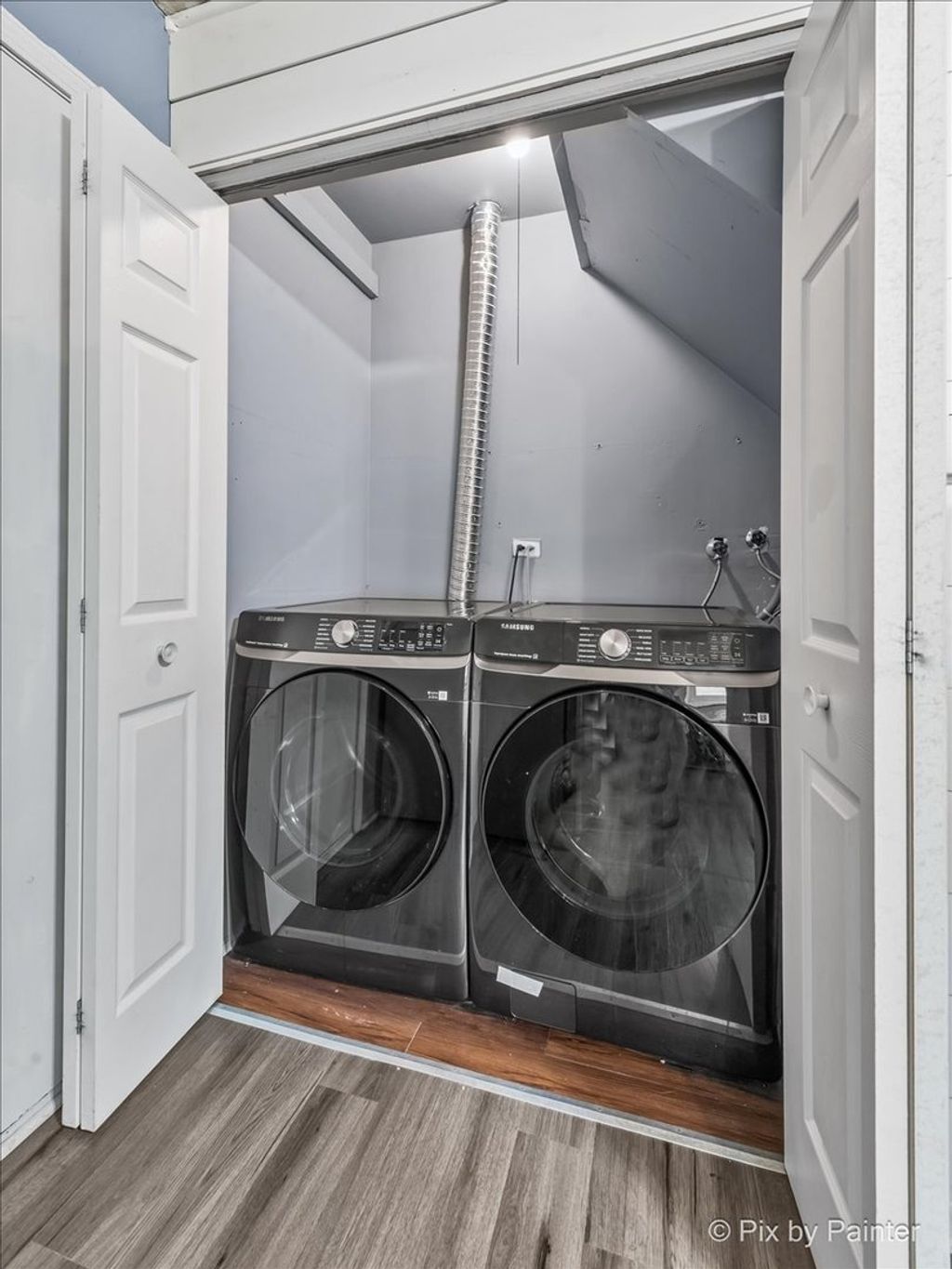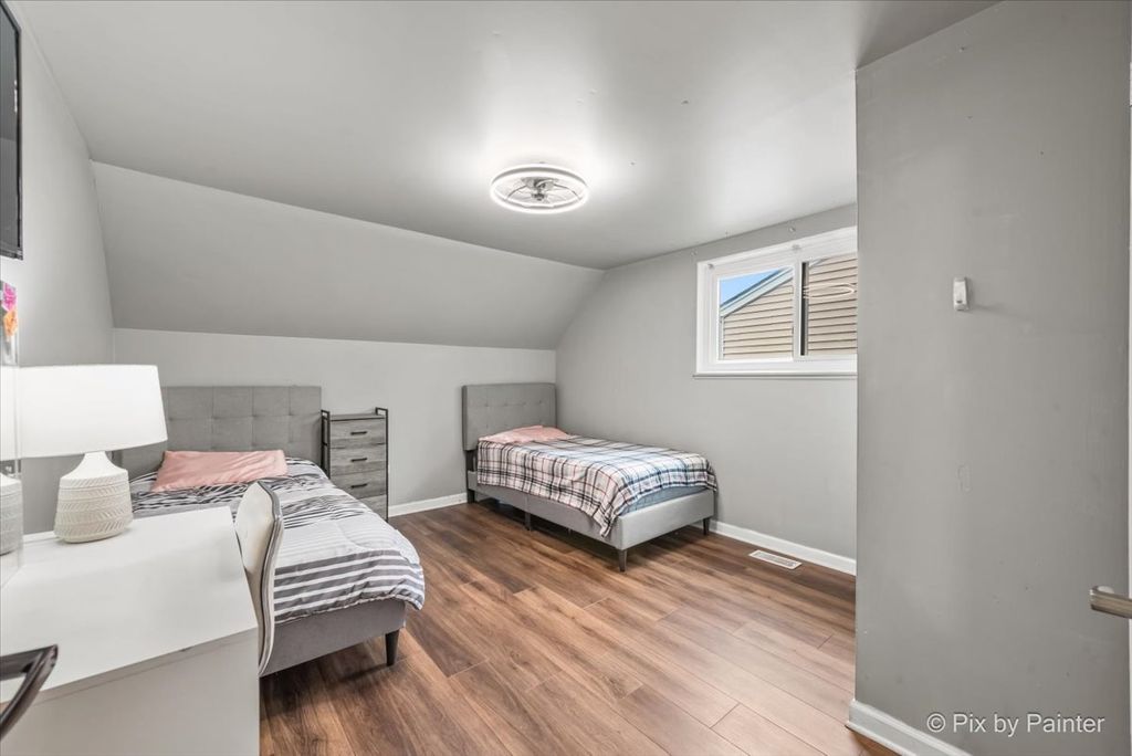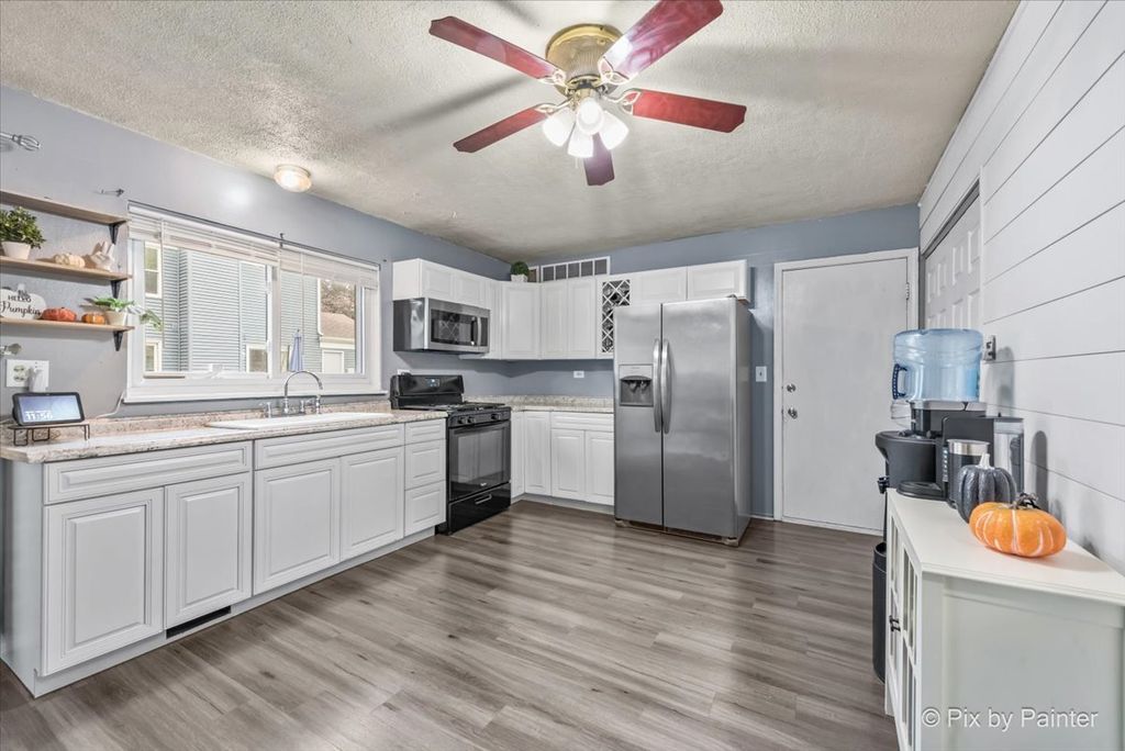 Step inside and discover a thoughtfully designed layout featuring a welcoming, tastefully decorated living room, a main-floor bedroom with a remodeled full bath (2023) - perfect for guests or single-level living. The recently remodeled kitchen (2023) shines with white shaker cabinets, built-in wine rack, stainless steel microwave and complimenting oven. Stainless refrigerator new in (2022). Gather around the cozy wood-burning fireplace that warms both the dining and living areas, ideal for entertaining or relaxing evenings in. Upstairs, enjoy brand-new luxury vinyl plank flooring (2025) in the bedrooms and fresh carpet in the loft, while the main floor offers durable luxury vinyl plank (2020) throughout; main floor bedroom is carpeted. The upper level loft is perfect for an at home office, study space or gaming set-up. Outside, the updates continue - new siding (2024), a fully fenced yard, and a cement driveway leading to your attached one-car garage for added convenience. With low taxes and association dues, this home offers both value and charm. Washer and dryer (2025 Samsung) are negotiable - making your move-in effortless! Property to be sold "As-Is."