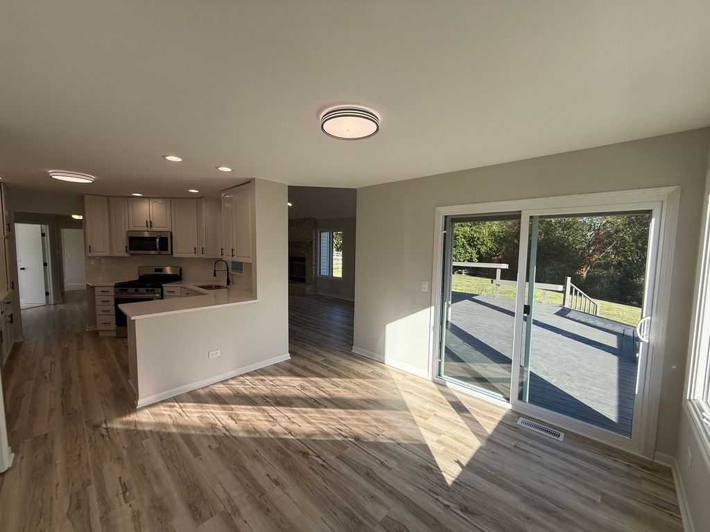 Welcome to this 4 bedroom, 3 bath newly renovated ranch home in the highly desired Lake Holiday community. Home features an open concept living with vaulted ceilings, new vinyl flooring and carpet throughout, kitchen with new QUARTZ countertops, tile backsplash and stainless-steel appliance suite. The large great room is perfect for gathering and relaxing by the elegant gas fireplace. The entire home has been freshly painted. Large master bedroom. Updated bathrooms. The master bath features a soaker tub and standup shower. Main floor laundry/mud room. Full finished basement. Large bar for entertaining. More living space. Fourth bedroom. Tons of storage. Giant deck in the backyard overlooking the mature trees. New AC condenser. Oversized 2.5 car garage. Lake Holiday has a ton to offer. A family-friendly private residential community surrounded by a 328 acre lake for swimming, boating, and fishing with two swimming beaches, campground, numerous playgrounds, picnic areas, a Frisbee golf course, skate-park, toboggan hill, exercise area, walking trails, Pickleball courts, and a dog park. Rentable boat docks, boat launches, and fishing piers available with a full-service private marina. Private security patrols 24 hours a day. The lodge at Beach One serves as a gathering place or great spot to host your next event. Come take a look today!