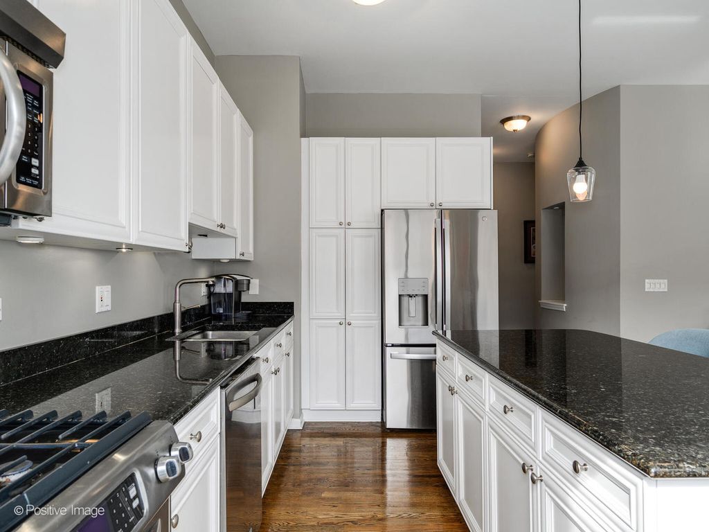 Gorgeous, extra-wide 3bed/2bath unit in an elevator building! This front facing unit features a spectacular floor plan including a massive great room with direct access to a large balcony, gas fireplace and plenty of space for a dining table and large sectional! The kitchen has white cabinets including a pantry, large island, granite countertops and SS appliances. The king-size primary bedroom has a walk-in closet, updated en-suite bath with great storage and a separate tub/shower. The 2nd and 3rd bedrooms are both very spacious and the 2nd bath was recently completely remodeled. 10-foot ceilings, hardwood floors, in-unit laundry, neutral paint! Bonus storage right outside the unit and TWO parking spaces in the attached heated garage are included. Prime Lakeview location - short walk to the Brown Line, restaurants, Whole Foods, shops, and coveted Burley Elementary.