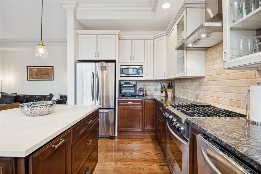 Timeless sophistication and everyday convenience meet in this sun-filled, four-story end-unit townhouse with attached two-car garage situated in the heart of downtown Westmont. The thoughtfully designed floor plan showcases 10-foot ceilings with crown molding, rich hardwood flooring, and sound-deadening construction throughout. A gourmet kitchenboasts custom cabinetry, granite countertops, and stainless-steel appliances-perfect for both everyday living and effortless entertaining. The inviting family room, centered around a cozy gas-log fireplace, offers the ideal space to relax and unwind. Upstairs, the primary suite provides a private retreat with a luxurious bath featuring a double vanity, separate shower, soaking tub, and two spacious closets-conveniently connected to an adjacent laundry room. The second bedroom includes its own full en suite bath, while the fourth level offers a third generous bedroom, full bath, and a flexible loft that can used as an office or living space and can easily convert into a fourth bedroom. The unfinished basement presents endless possibilities-a home theater, exercise studio, or guest suite-with plumbing already in place for an additional bathroom. Plus attached two-car garage is freshly outfitted with a charger for an electric vehicle. Recent upgrades include a new two-step AC/HVAC system installed in June 2024 and an EV charger for one vehicle in the garage. Ideally located near the METRA commuter station and vibrant downtown amenities.